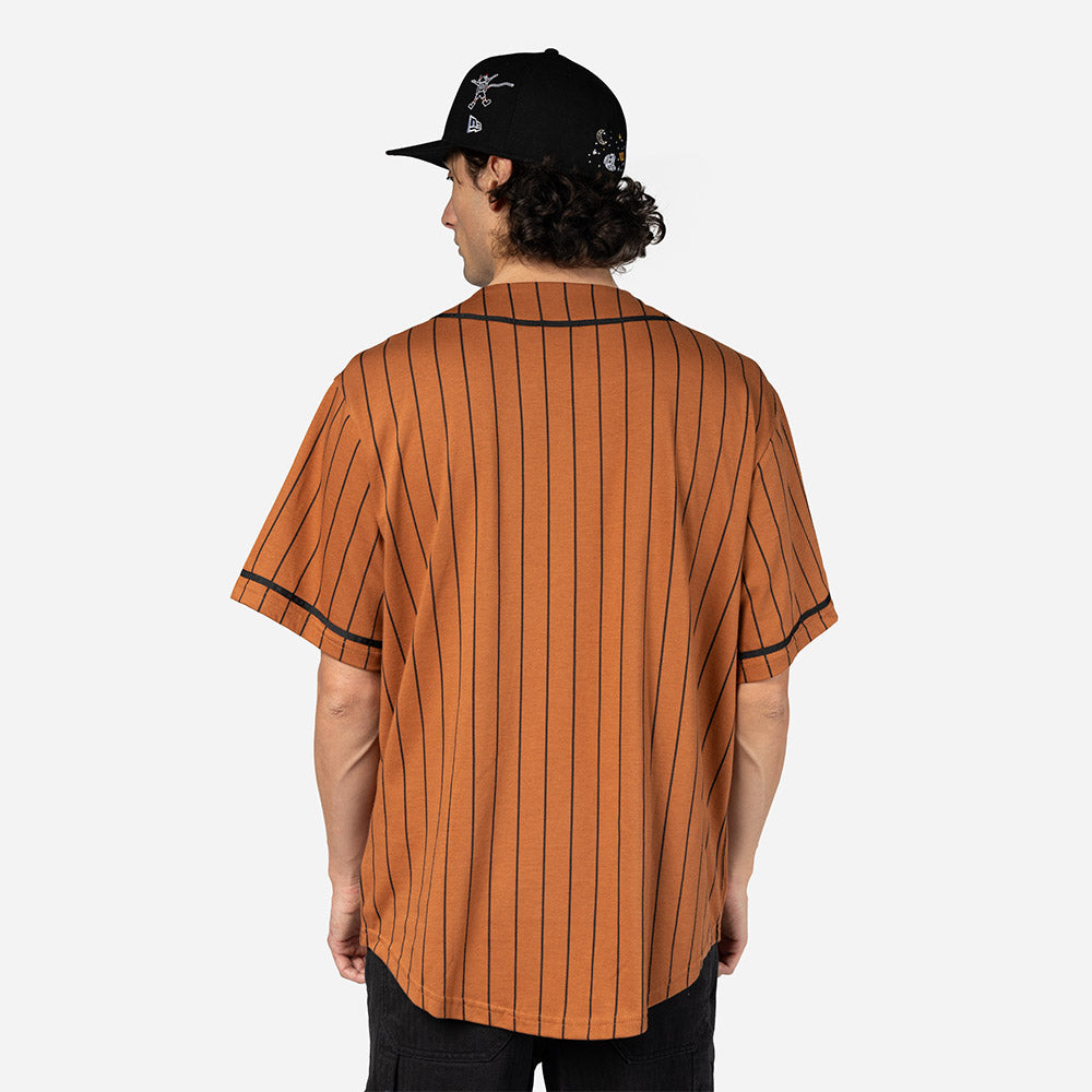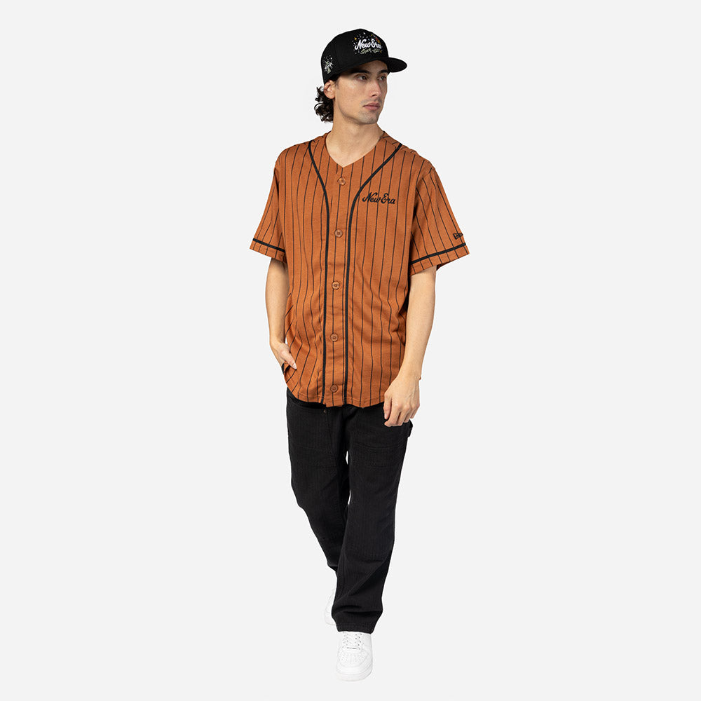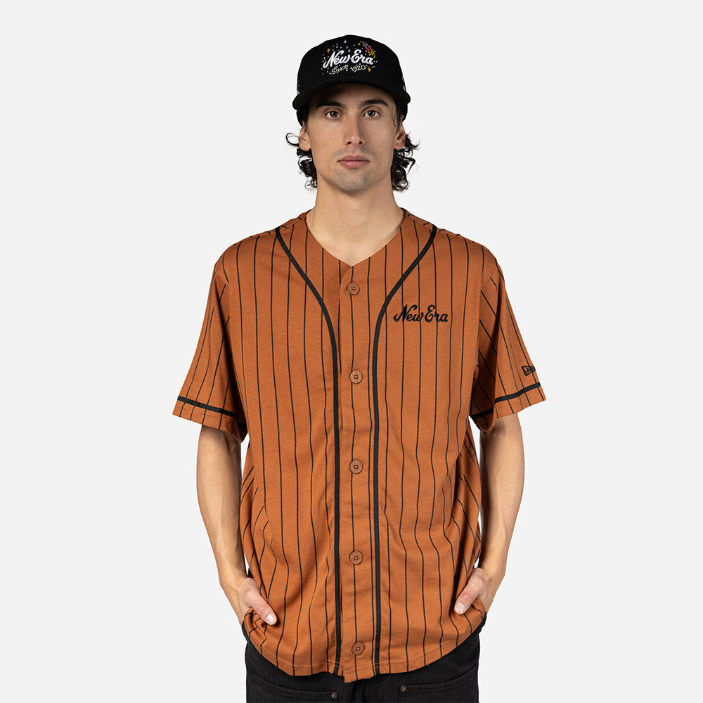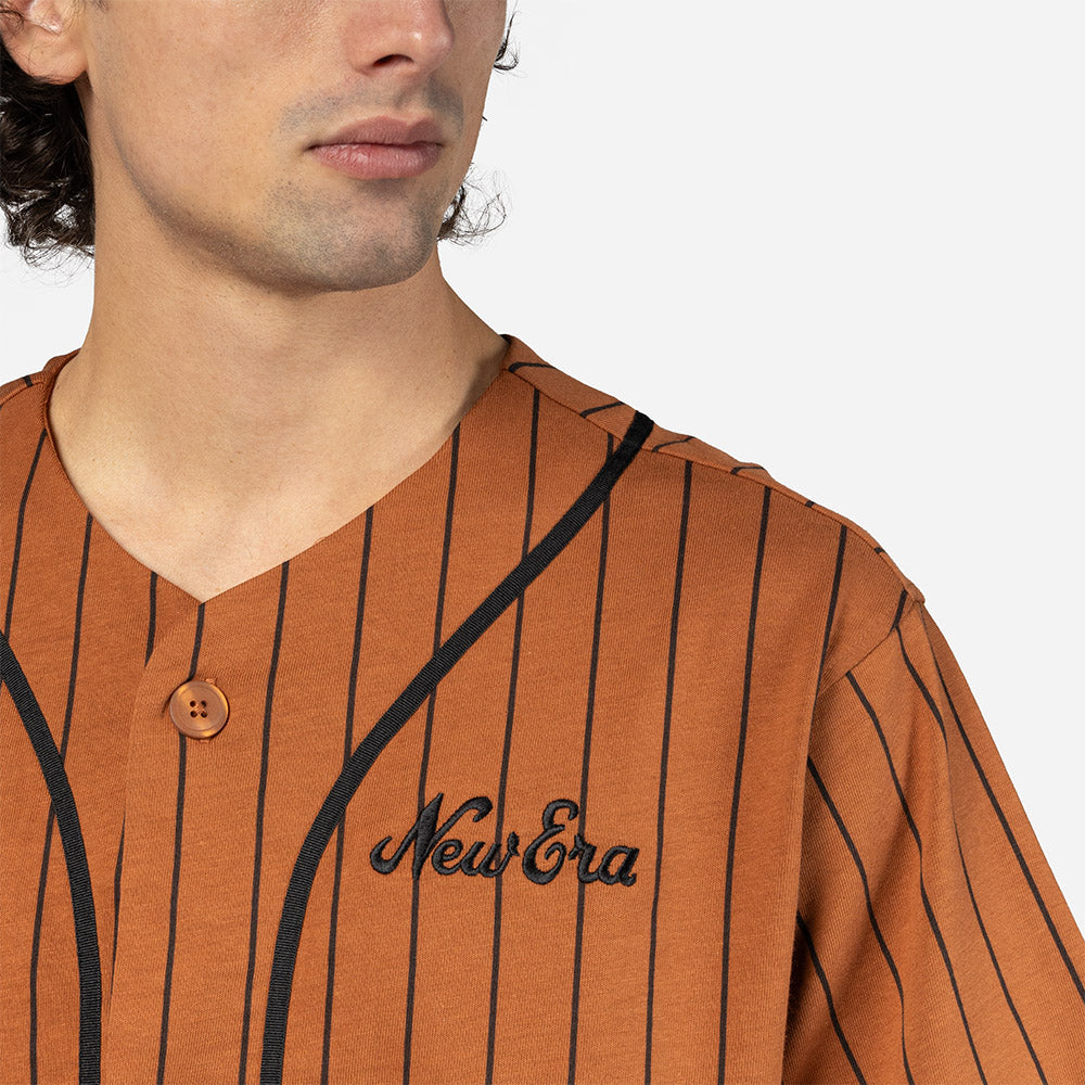 Este Jersey New Era de la colección New Era Heritage presenta un diseño en color café estilo jersey retro de beisbol con rayas verticales, el nombre de New Era bordado en el frente del lado izquierdo y el flag de New Era en la manga izquierda. Cómpralo ya.