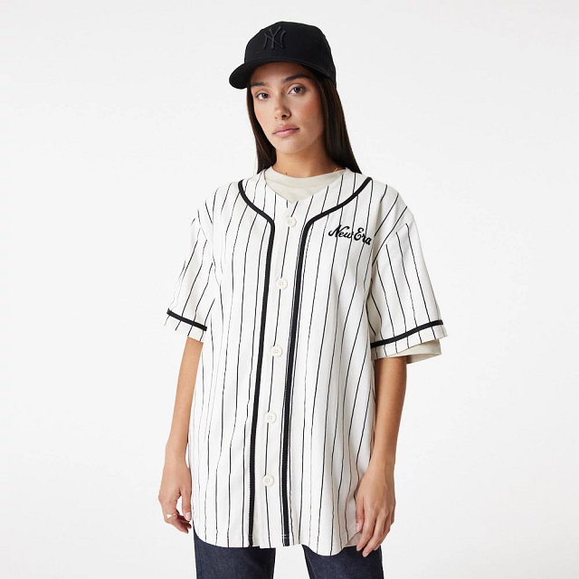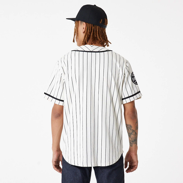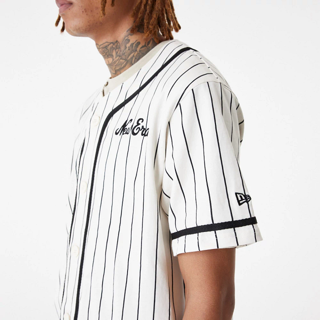 Este Jersey New Era de la colección New Era Pinstripe en color blanco presenta el nombre de New Era bordado en la parte frontal. Luce con estilo y añade a tu carrito.