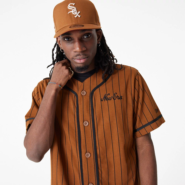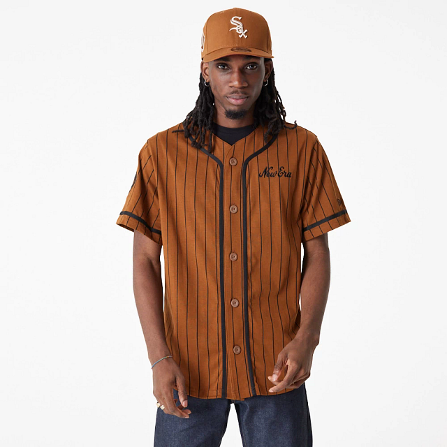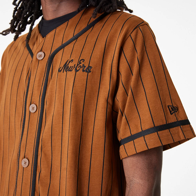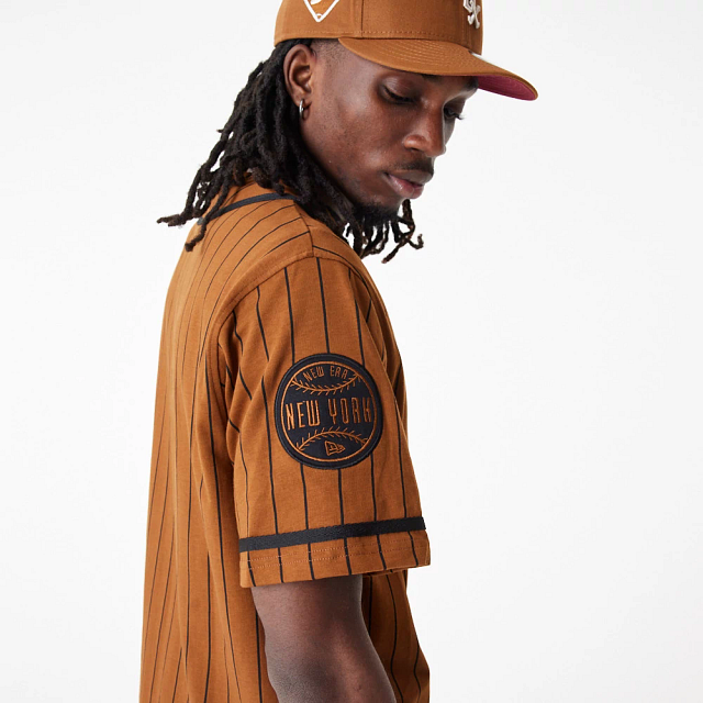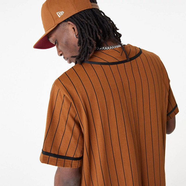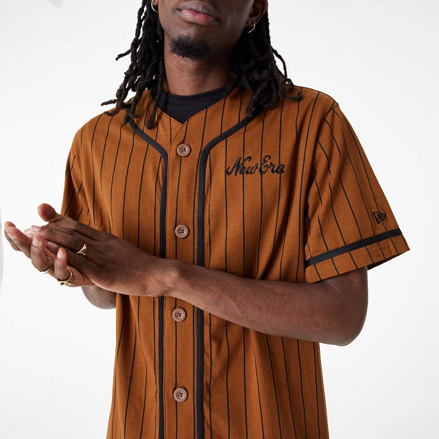 Este Jersey New Era de la colección New Era Pinstripe en color café presenta el nombre de New Era bordado en la parte frontal. Luce con estilo y añade a tu carrito.