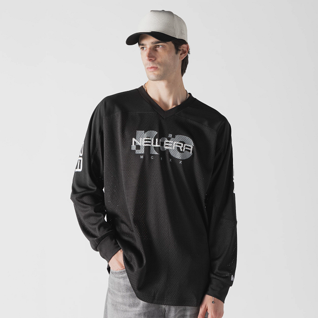 Este Jersey New Era de corte regular de la colección New Era Urban Core que ofrece un ajuste cómodo y clásico, fiel a la talla. Presenta un diseño en color negro, New Era en la parte frontal y en las mangas, cuello en v y el flag de New Era bordado en la manga izquierda. Cómprala ya.