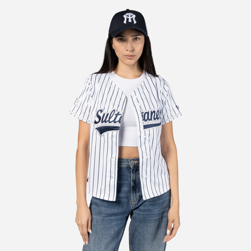 Este Jersey New Era para Mujer de Sultanes de Monterrey de la colección LAMP Jerseys 2024 presenta un diseño con el nombre de los Sultanes en la parte frontal, el logo del equipo en la manga derecha y el flag de New Era bordado en la manga izquierda. Apoya a tu equipo y cómprala ya.