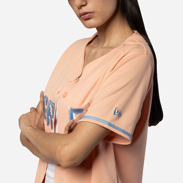 Ponle color a tu pasión con este Jersey New Era para Mujer de Tigres de Quintana Roo de la colección LMB Pastel que presenta el nombre de Tigres en grande cubriendo toda la parte frontal. Otros detalles incluyen un parche del equipo en la manga derecha y el flag de New Era bordado en la manga izquierda. Apoya a tu equipo con estilo y cómpralo ya.