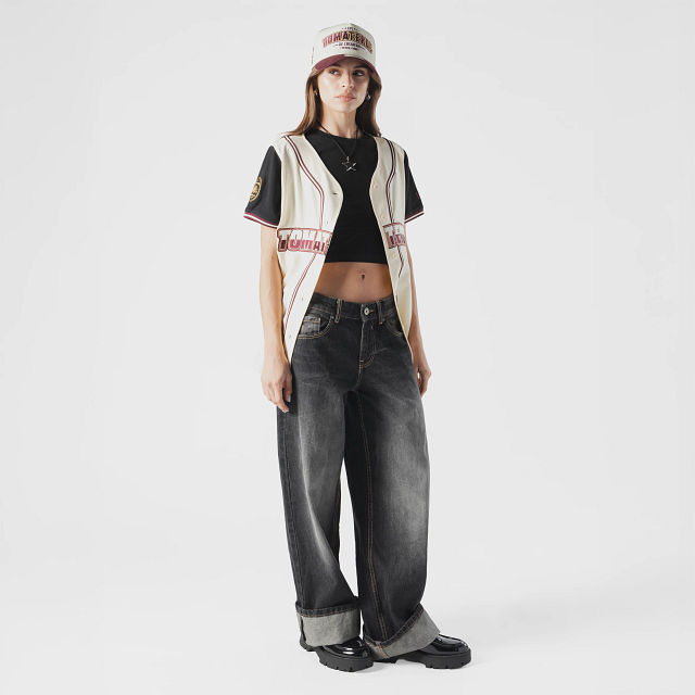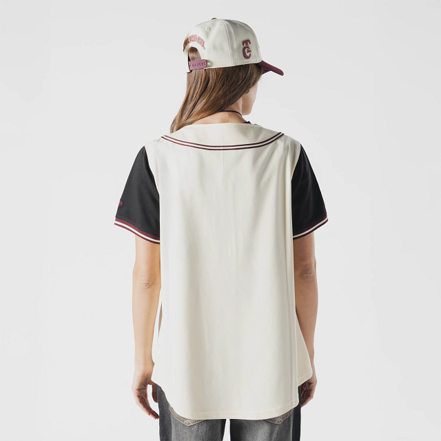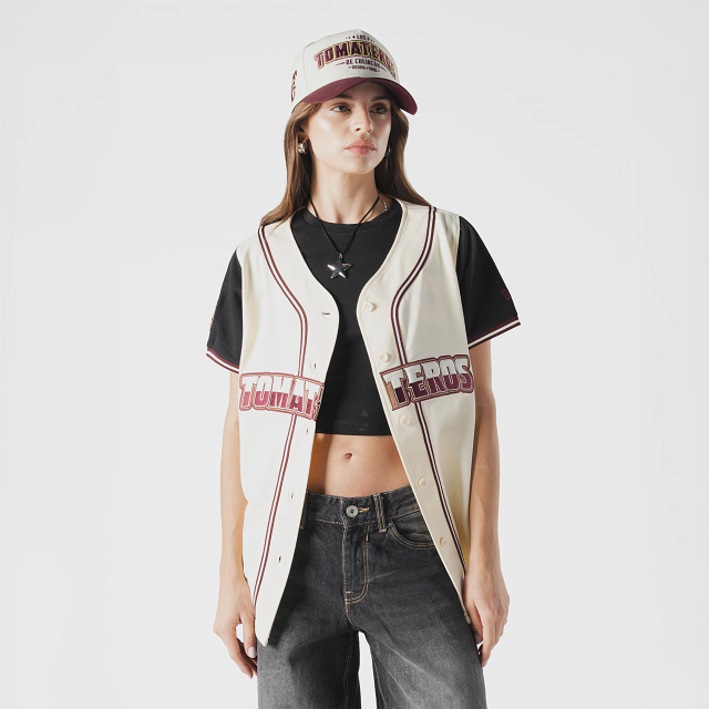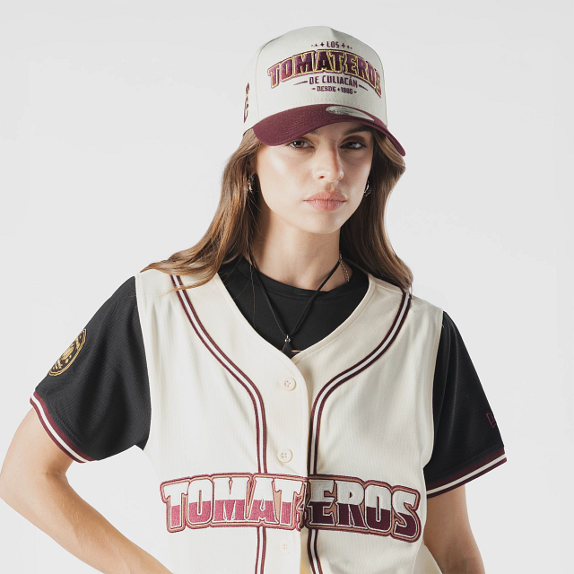 Este Jersey New Era para Mujer de la colección Tomateros de Culiacán X Watchavato LAMP presenta el nombre de los Tomateros bordado en la parte frontal, parche 60 Aniversario en la manga derecha y el flag de New Era bordado en la manga izquierda. Cómpralo ya.