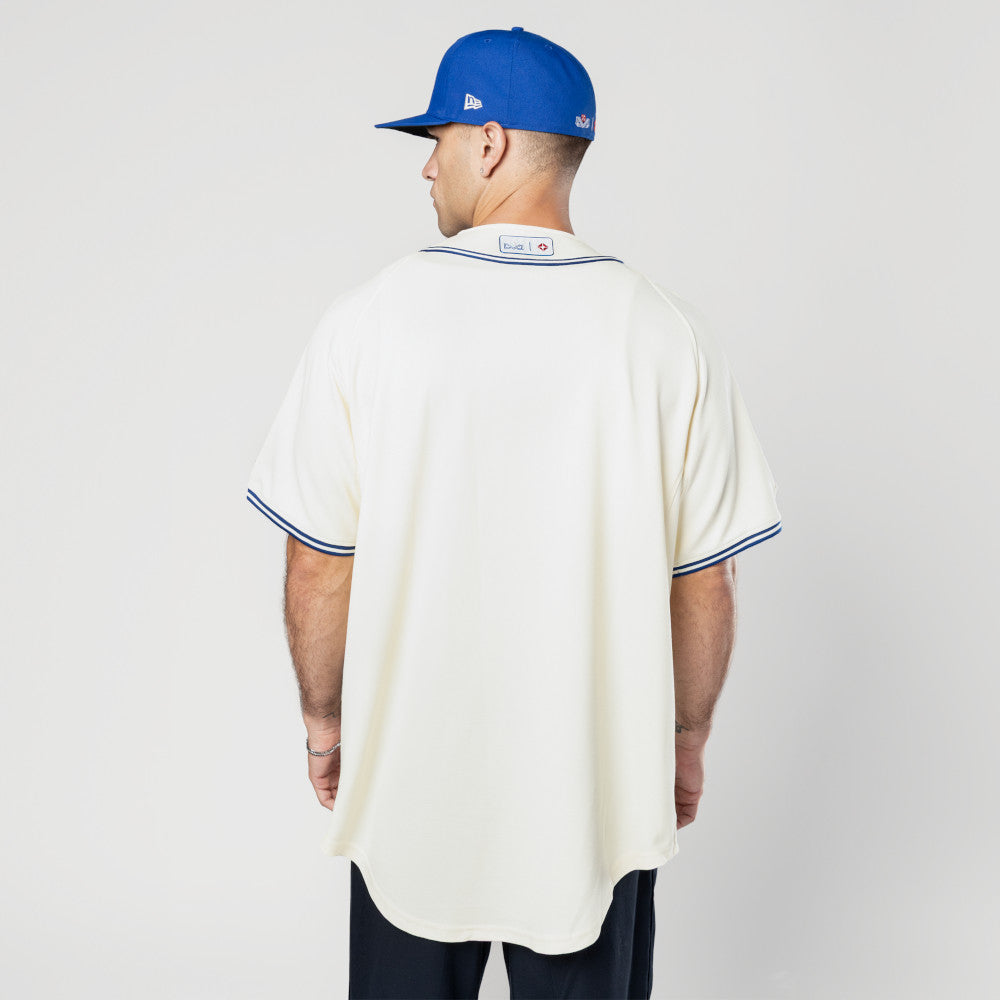 Este Jersey New Era de Yaquis de Obregón de la colección LAMP Retro presenta el nombre de los Yaquis bordado en la parte frontal, el logotipo retro del equipo en la manga derecha y el flag de New Era bordado en la manga izquierda. Cómpralo ya.