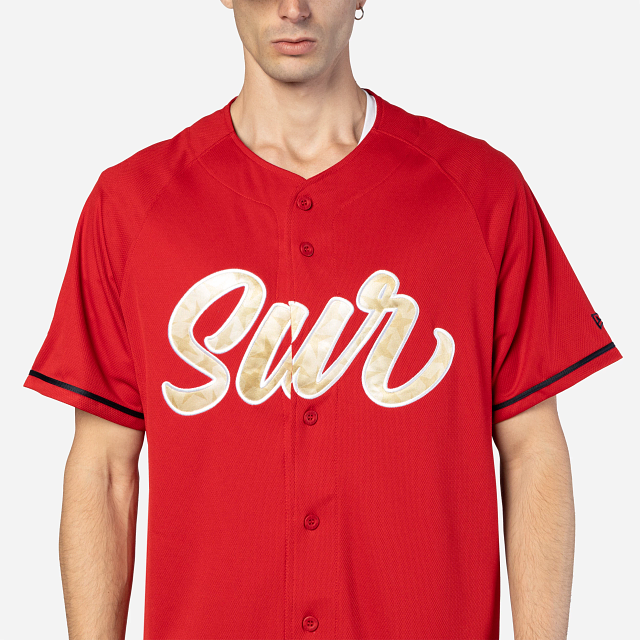 Este Jersey New Era de la Zona Norte de la Liga Mexicana de Beisbol de la colección LMB Juego de Estrellas 2024 que se llevará a cabo en el estado de Veracruz presenta un diseño rojo con la palabra Sur en dorado bordado al frente, el parche del evento en la manga derecha y el flag de New Era en la izquierda. Cómpralo ya.