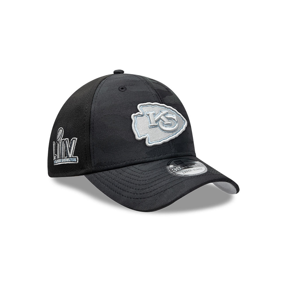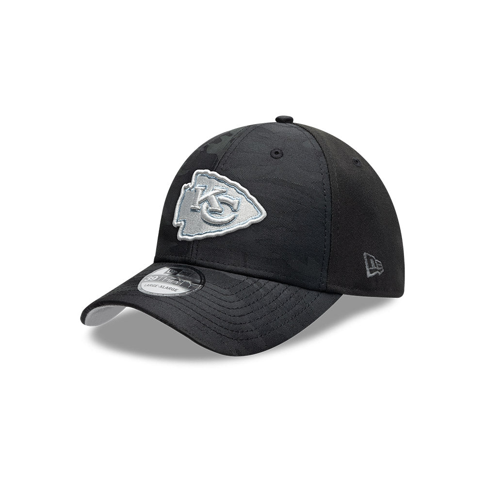 Esta gorra curva New Era 39THIRTY de Kansas City Chiefs de la colección NFL Black Camo presenta un diseño de camuflaje en color negro con el logotipo de los Chiefs bordado en los paneles frontales, un parche conmemorativo del lado derecho, el logo de la NFL al reverso y el flag de New Era bordado del lado izquierdo. Cómprala ya.