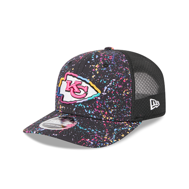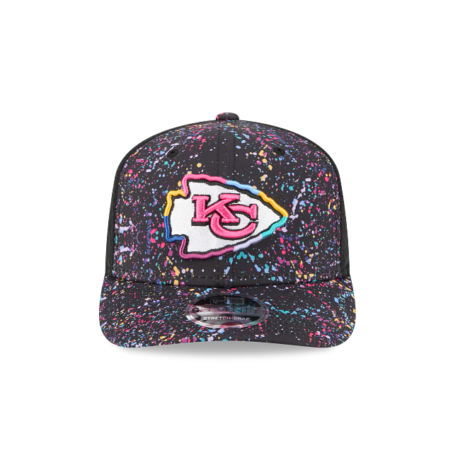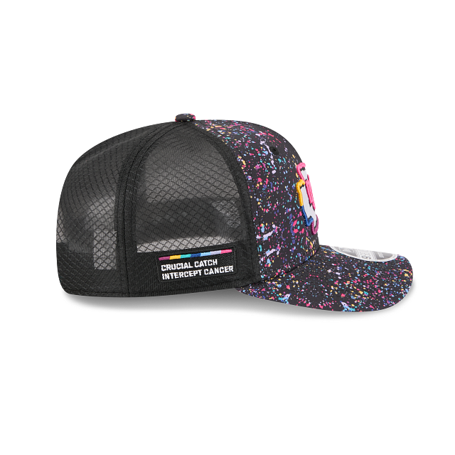 Esta gorra curva New Era 9SEVENTY de Kansas City Chiefs de la colección NFL Crucial Catch 2025 presenta un diseño de salpicaduras con el logotipo de los Chiefs bordado en los paneles frontales, parche Crucial Catch Intercept Cancer del lado derecho, malla trucker con el logo de la NFL en la parte de atrás y el flag de New Era bordado el lado izquierdo. Cómprala ya.