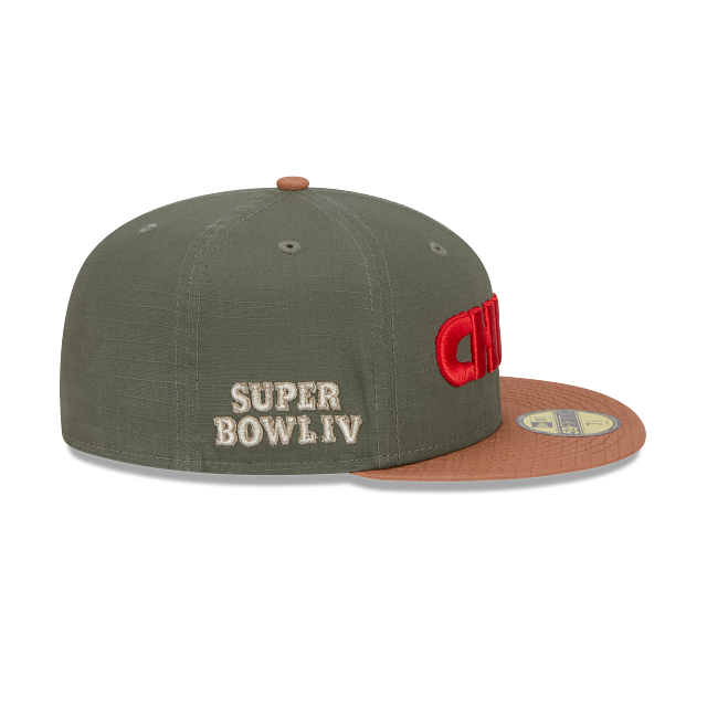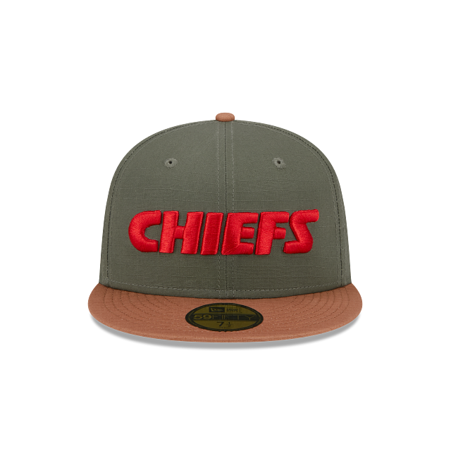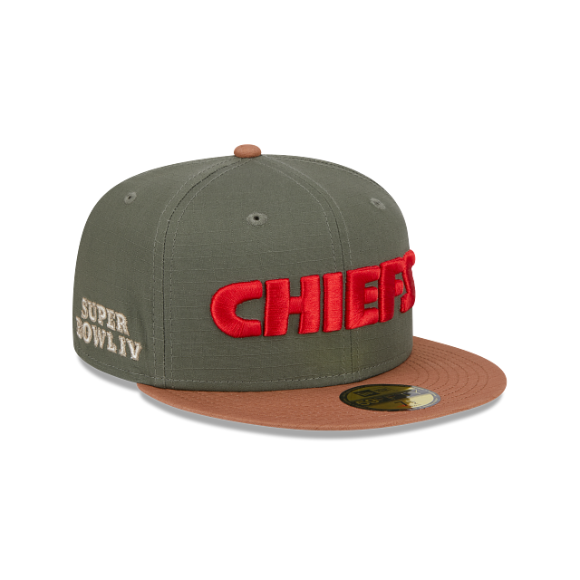 Esta gorra New Era 59FIFTY de Kansas City Chiefs de la colección NFL Ripstop presenta un diseño two tone con la corona en color verde olivo y la visera café, el nombre de los Chiefs bordado al frente, un parche conmemorativo del lado derecho, el logo de NFL dorado al reverso y el flag de New Era bordado en el lado izquierdo. Apoya a tu equipo y cómprala ya.
