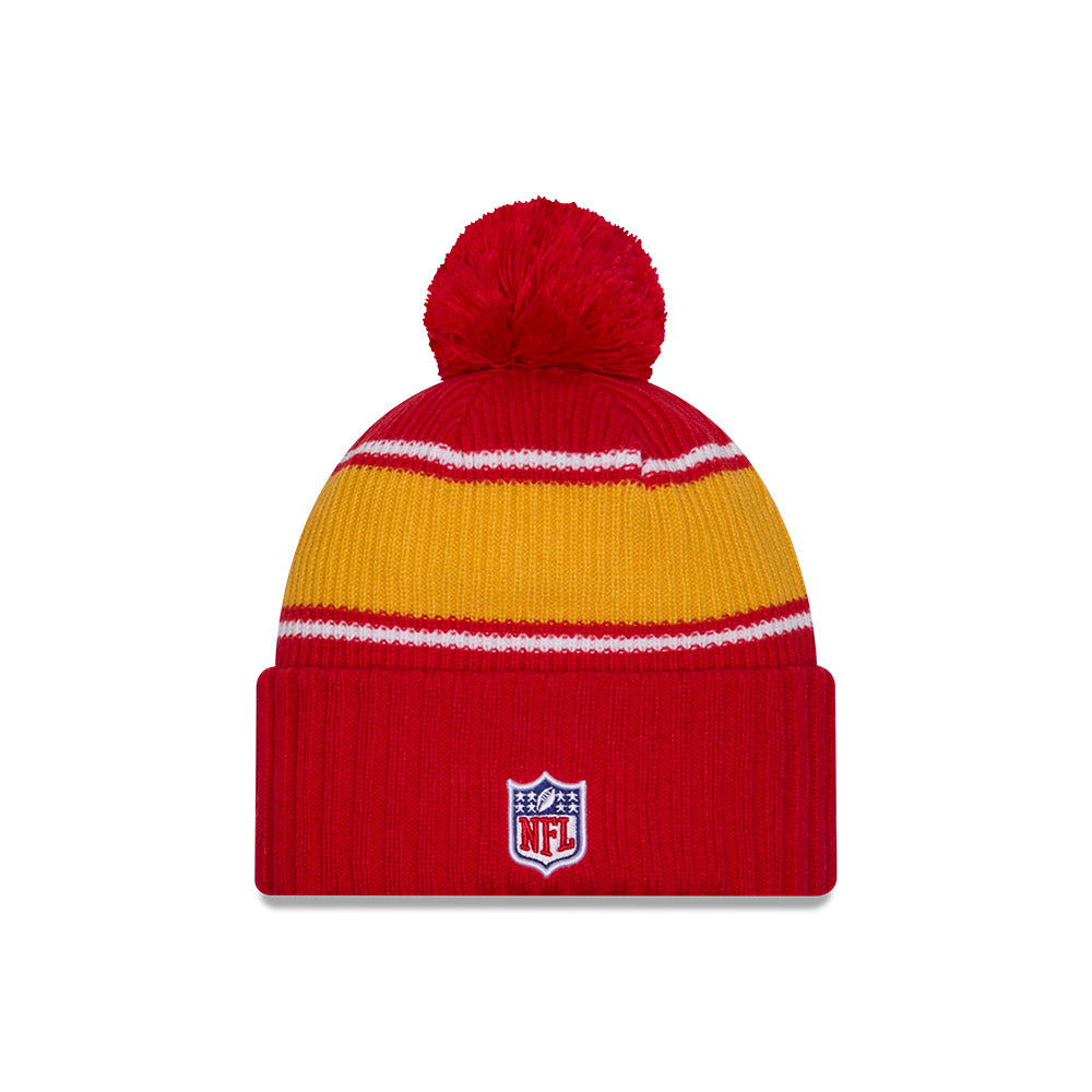 Este gorro New Era de Kansas City Chiefs de la colección NFL Sideline 2024 presenta un diseño invernal con el logotipo de los Chiefs bordado en la parte frontal, el logo de la NFL en la parte trasera y el flag de New Era bordado en el lado izquierdo. Apoya a tu equipo y cómprala ya.