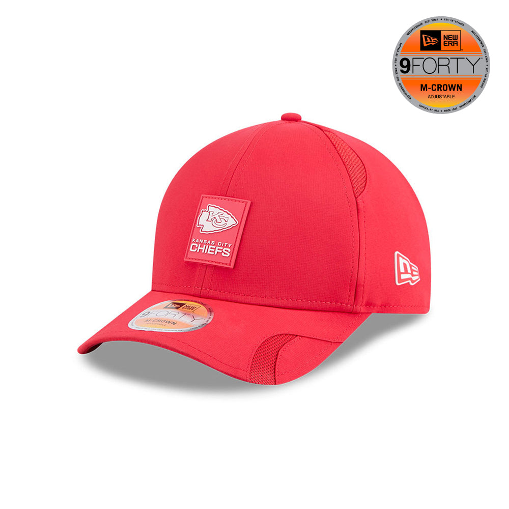 Esta gorra curva New Era 9FORTY M-Crown de Kansas City Chiefs de la colección NFL Sideline Hot Weather 2025 incorpora tecnología HOT que mejora el rendimiento y la comodidad: COOLERA con banda interior que absorbe la humedad y secado rápido para uso durante todo el día, DRYERA con tela repelente al agua y COMFORT con material ligero para una sensación suave y ajuste cómodo.