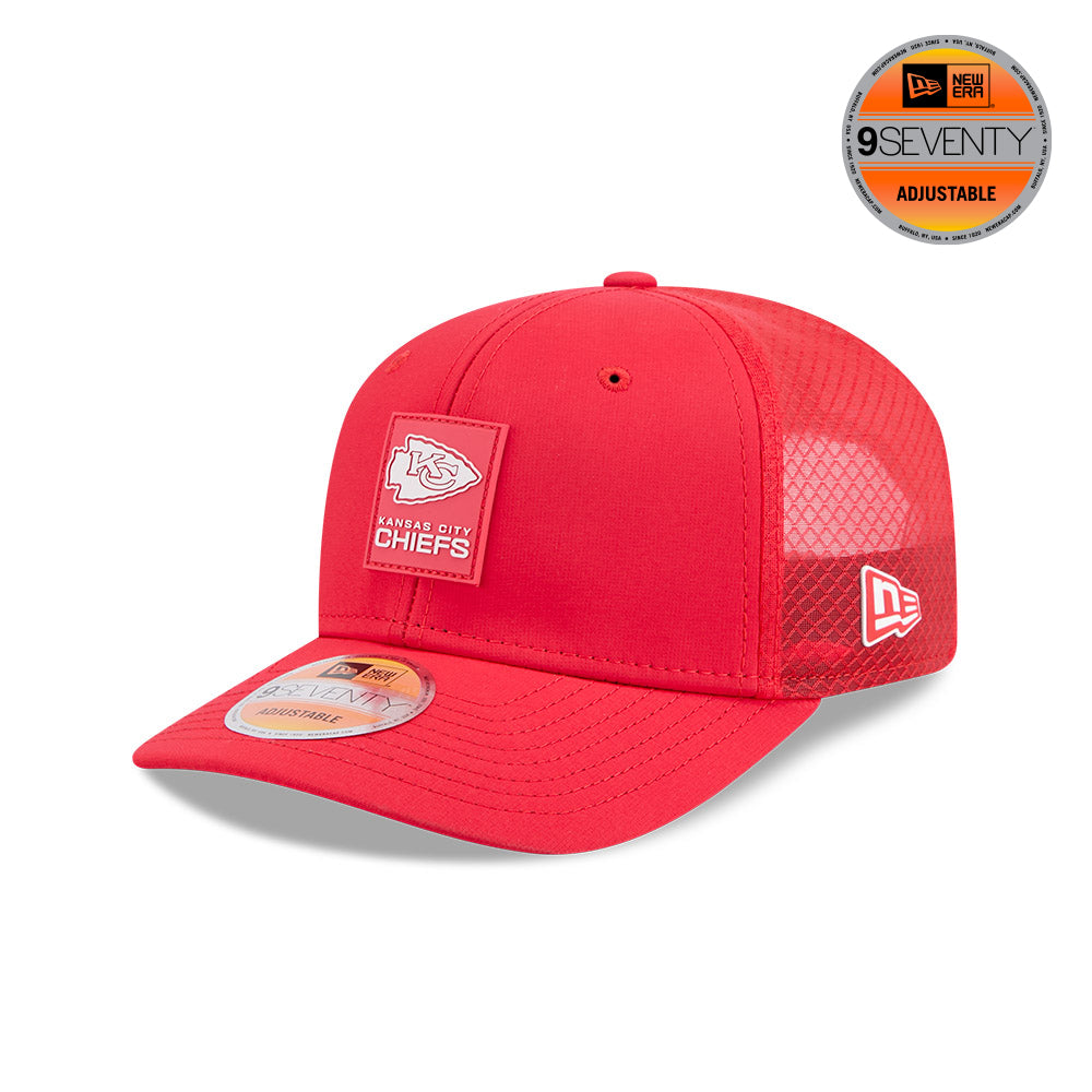 Presenta el logotipo de los Chiefs en silicón tipo engomado en los paneles frontales, malla trucker ligera para mejor ventilación, el logo de la NFL en la parte derecha de atrás y el flag de New Era engomado del lado izquierdo. Apoya a tu equipo y cómprala ya.