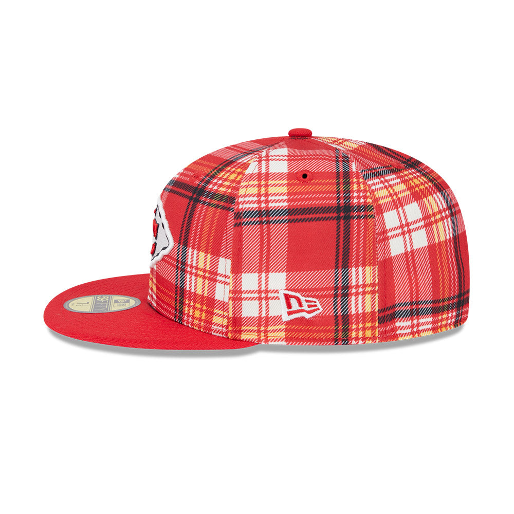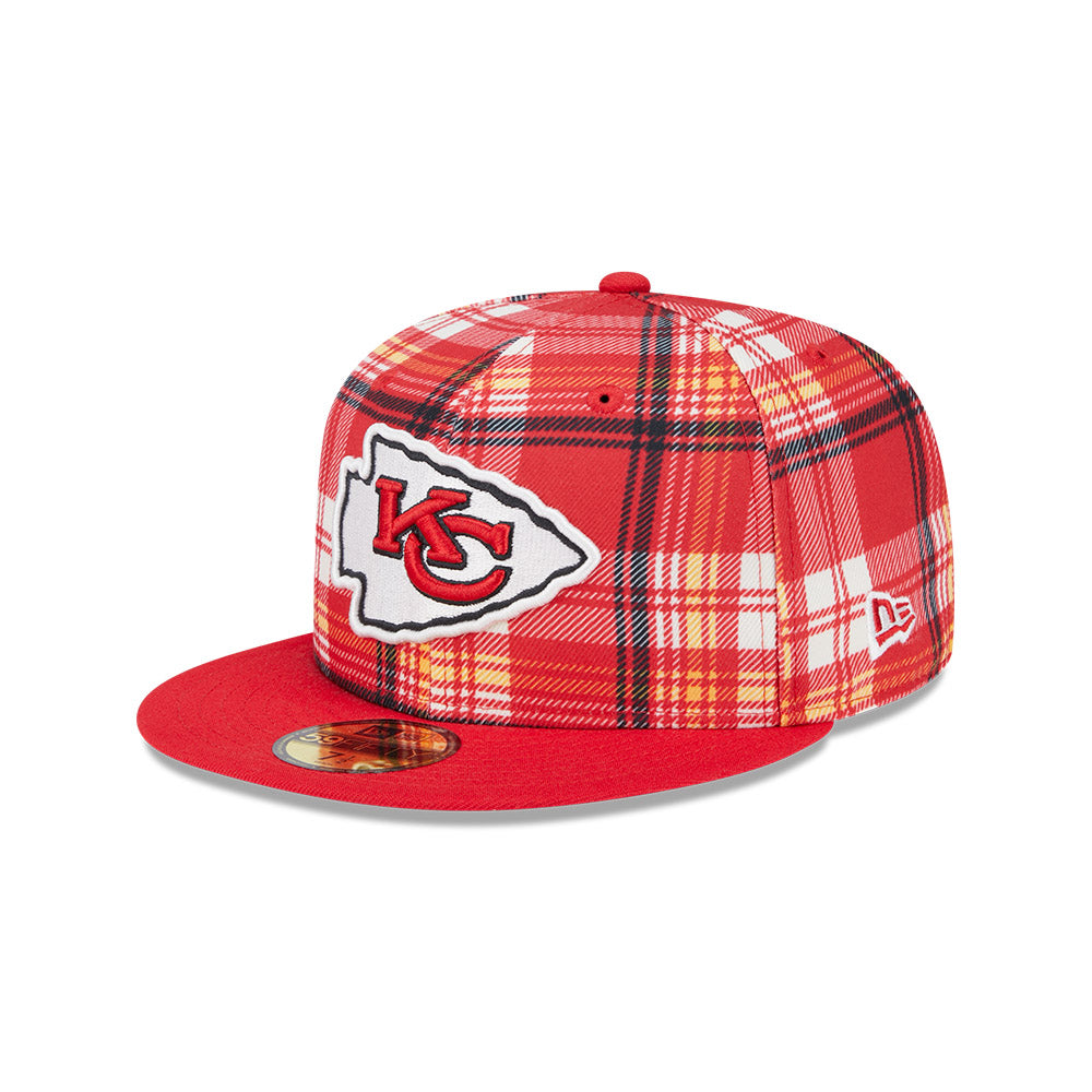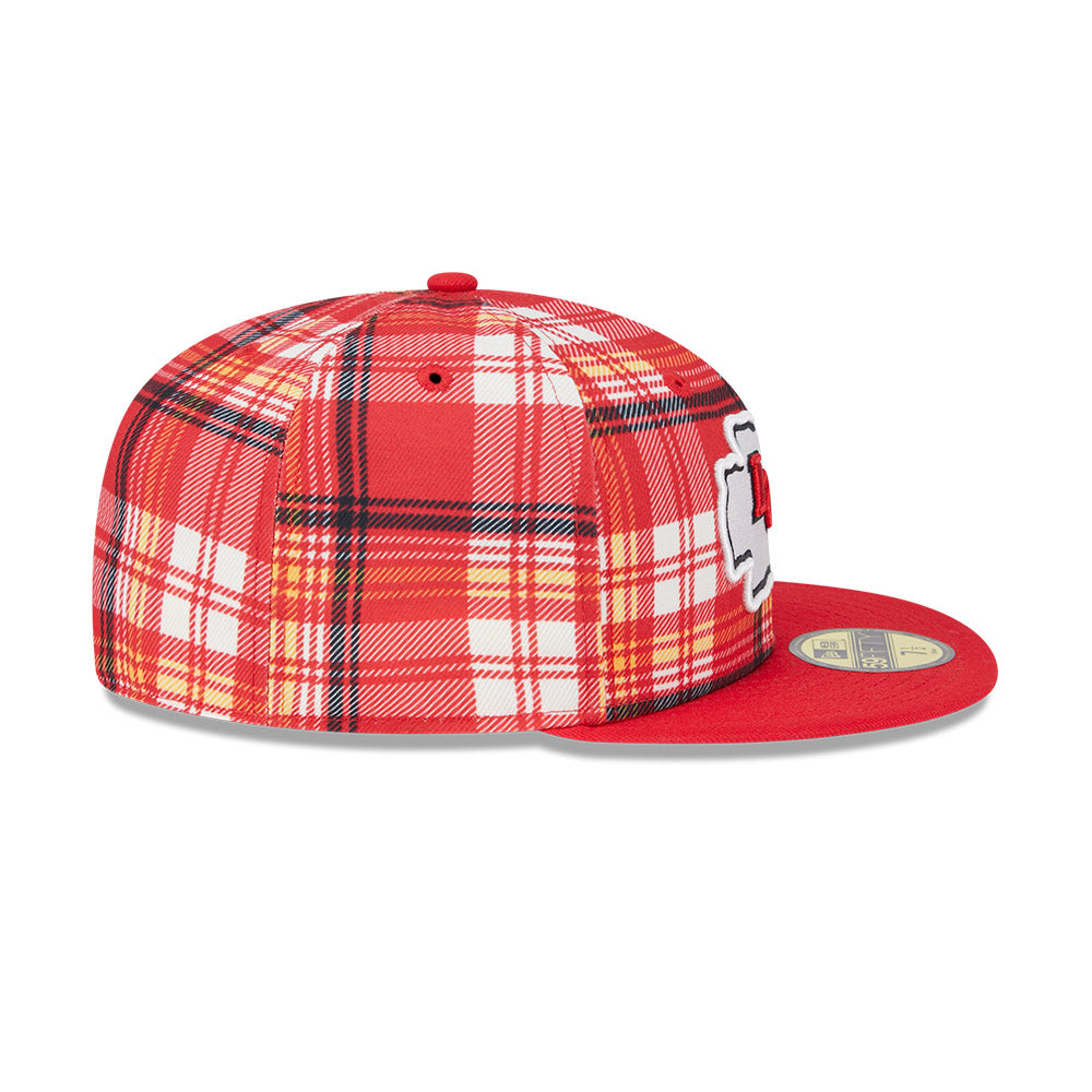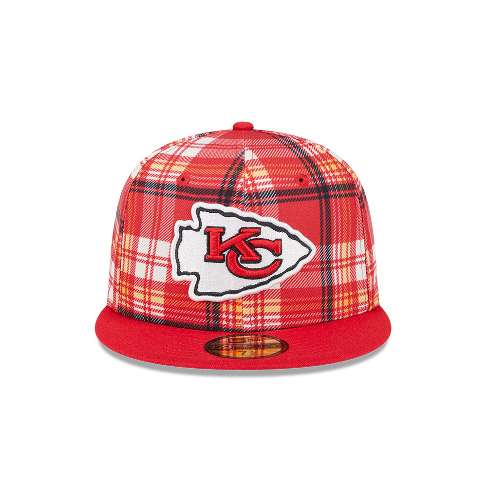 Esta gorra plana New Era 59FIFTY de Kansas City Chiefs de la colección NFL Sideline 2024 presenta un diseño a cuadros con el logotipo de los Chiefs bordado en los paneles frontales y el flag de New Era bordado en el lado izquierdo. Cómprala ya.