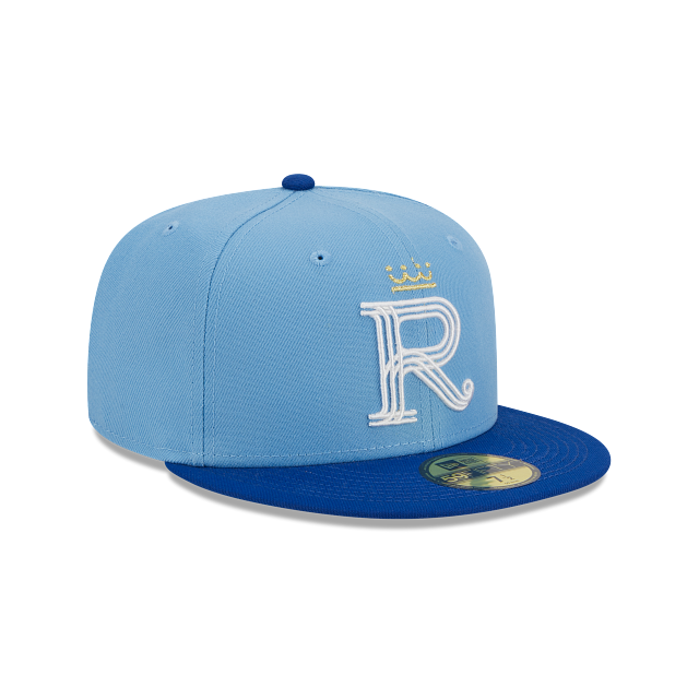 Esta gorra New Era 59FIFTY de Kansas City Royals de la colección MLB Retro City presenta un diseño en dos tonos azules con un innovador logotipo de los Royals bordado en los paneles frontales, el Batterman al reverso, undervisor gris, y el flag de New Era bordado en el lado izquierdo. Apoya a tu equipo y cómprala ya.
