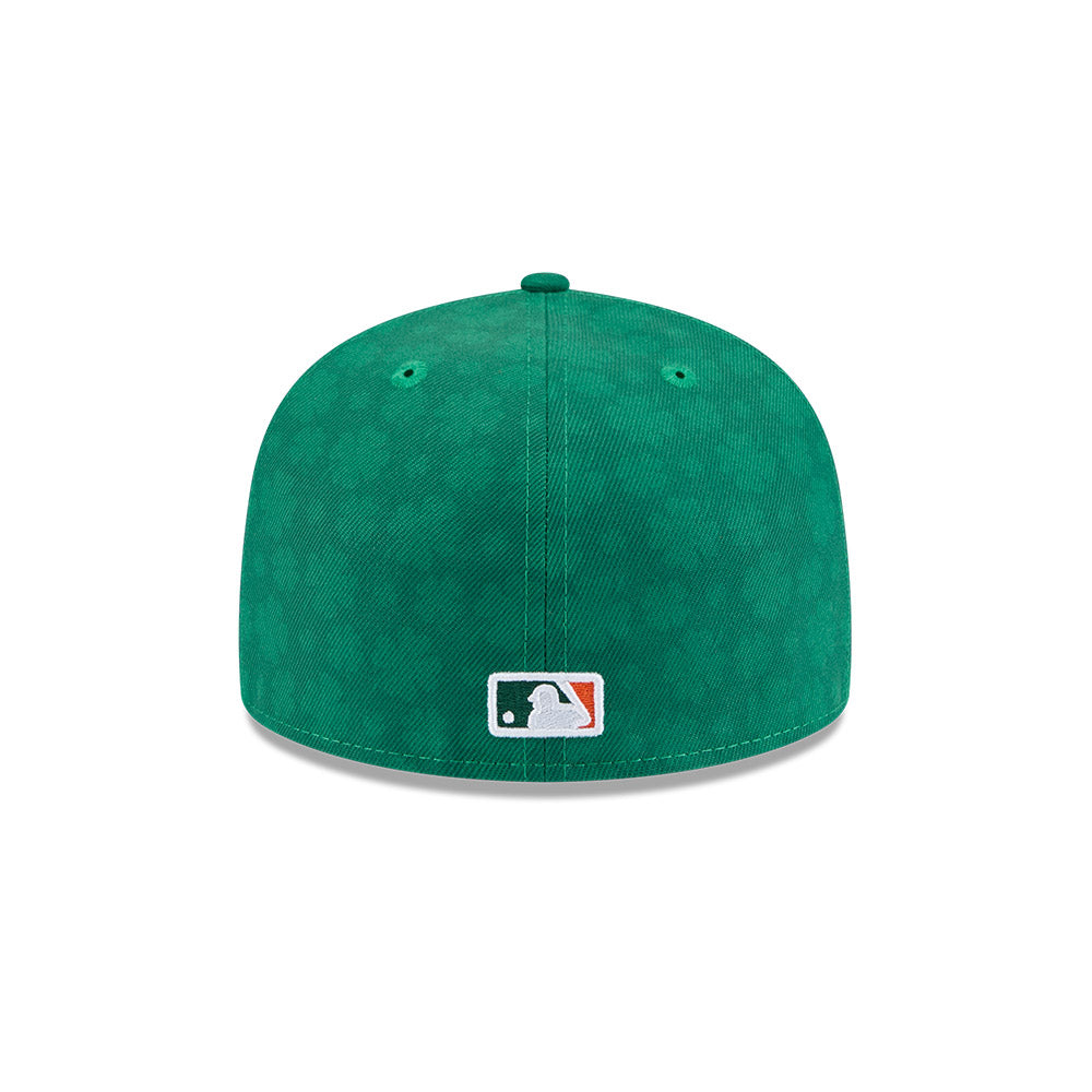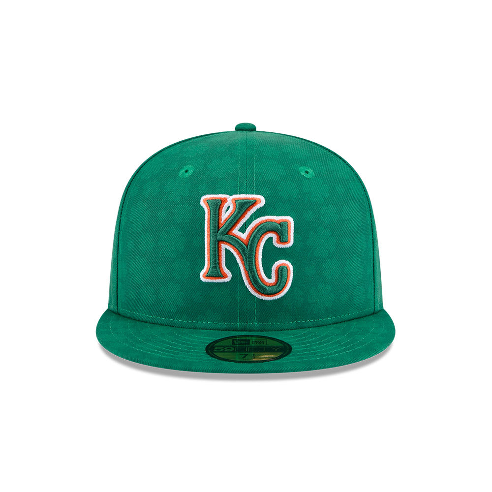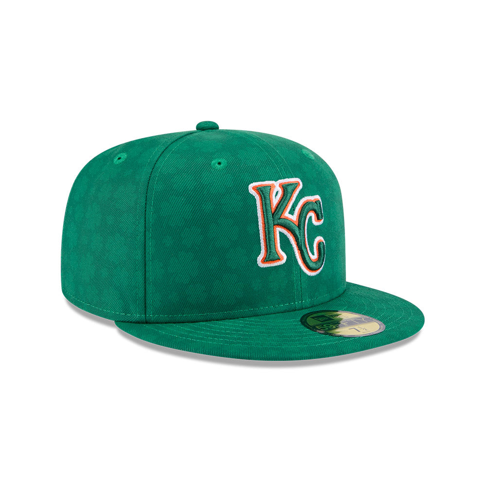 Esta gorra plana New Era 59FIFTY de Kansas City Royals de la colección MLB St. Patrick's Day 2025 presenta un diseño con el clásico verde de la celebración acompañado de un patrón de tréboles de cuatro hojas en toda la corona y visor, el logotipo de los Royals bordado en los paneles frontales, el MLB Batterman al reverso y el flag de New Era bordado del lado izquierdo. Cómprala ya.