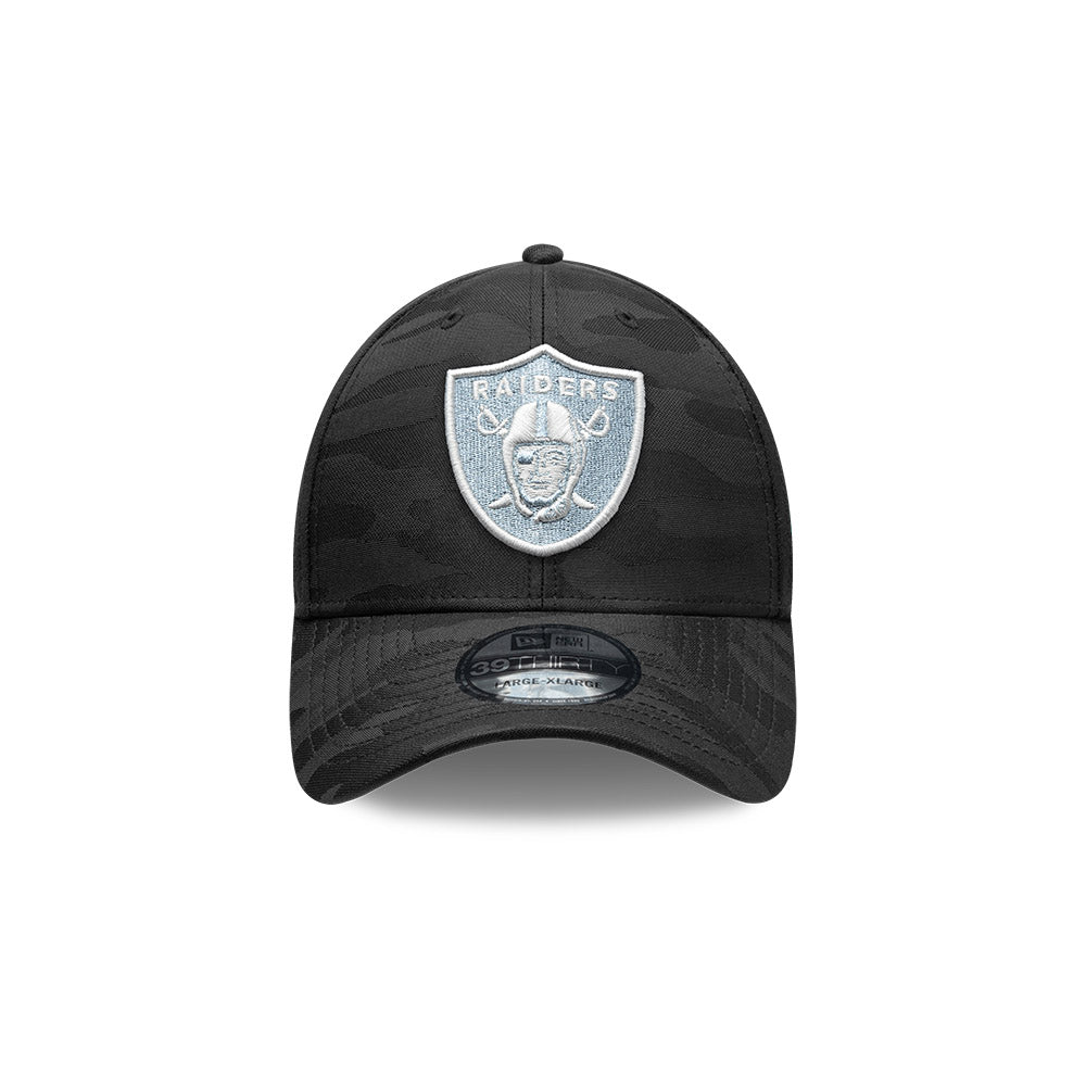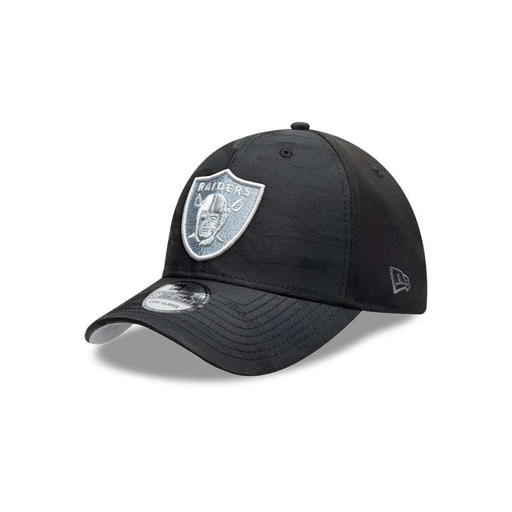 Esta gorra curva New Era 39THIRTY de Las Vegas Raiders de la colección NFL Black Camo presenta un diseño de camuflaje en color negro con el logotipo de los Raiders bordado en los paneles frontales, un parche conmemorativo del lado derecho, el logo de la NFL al reverso y el flag de New Era bordado del lado izquierdo. Cómprala ya.