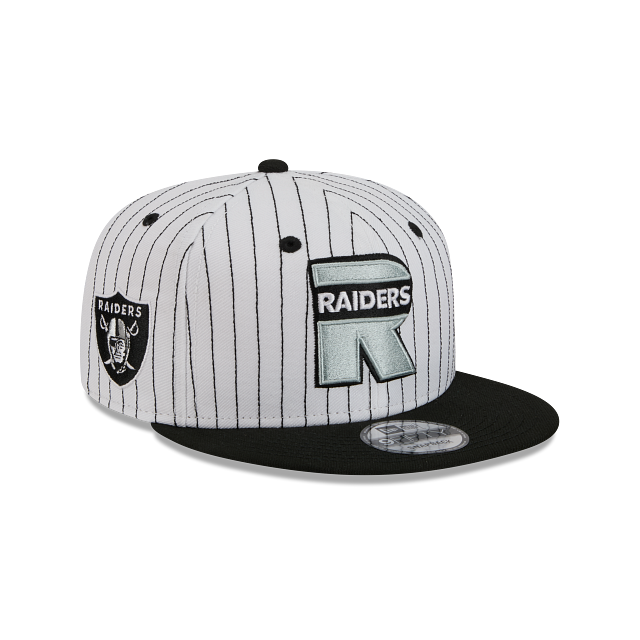 Esta gorra plana New Era 9FIFTY de Las Vegas Raiders de la colección NFL Deceptor presenta un diseño pinstripe con la inicial de los Raiders junto con su nombre bordado en los paneles frontales, el logo del equipo del lado derecho y el flag de New Era bordado del lado izquierdo. Cómprala ya.