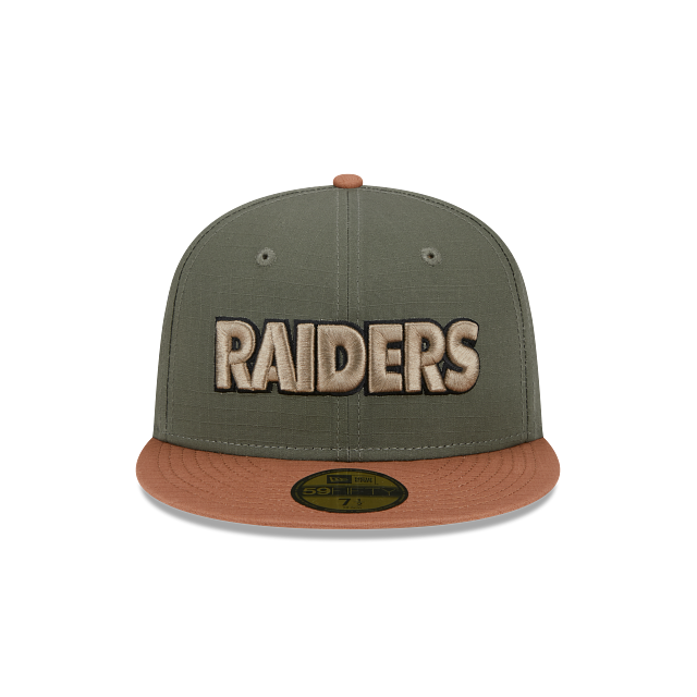 Esta gorra New Era 59FIFTY de Las Vegas Raiders de la colección NFL Ripstop presenta un diseño two tone con la corona en color verde olivo y la visera café, el nombre de los Raiders bordado al frente, un parche conmemorativo del lado derecho, el logo de NFL dorado al reverso y el flag de New Era bordado en el lado izquierdo. Apoya a tu equipo y cómprala ya.