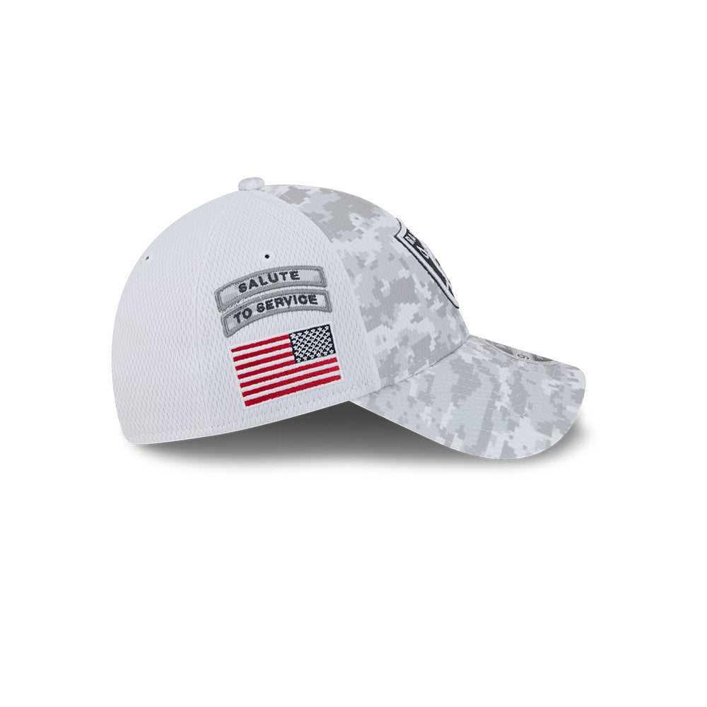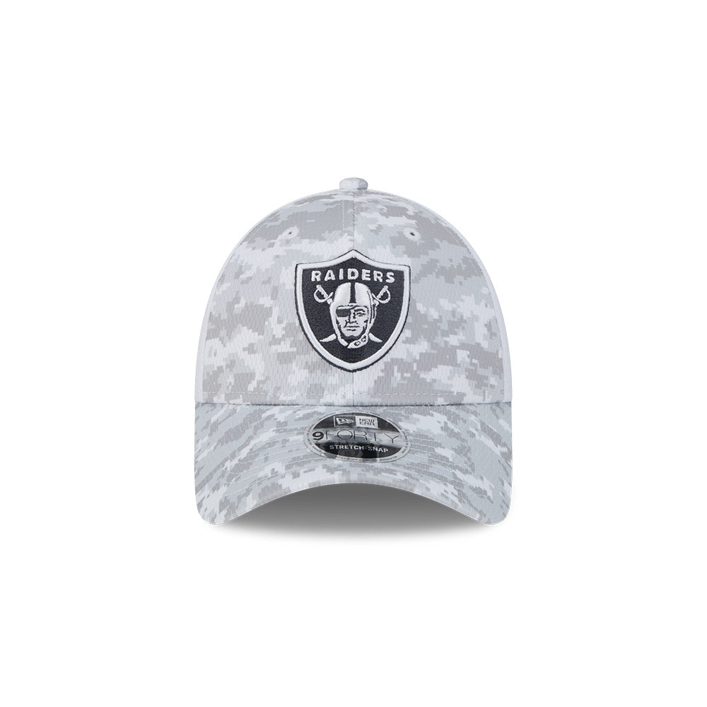 Esta gorra curva New Era 9FORTY de Las Vegas Raiders de la colección NFL Salute to Service 2024 presenta un diseño de camuflaje con el logotipo de los Raiders bordado en los paneles frontales, la bandera de Estados Unidos del lado derecho, el logo de la NFL al reverso y el flag de New Era bordado del lado izquierdo. Apoya a tu equipo y cómprala ya.
