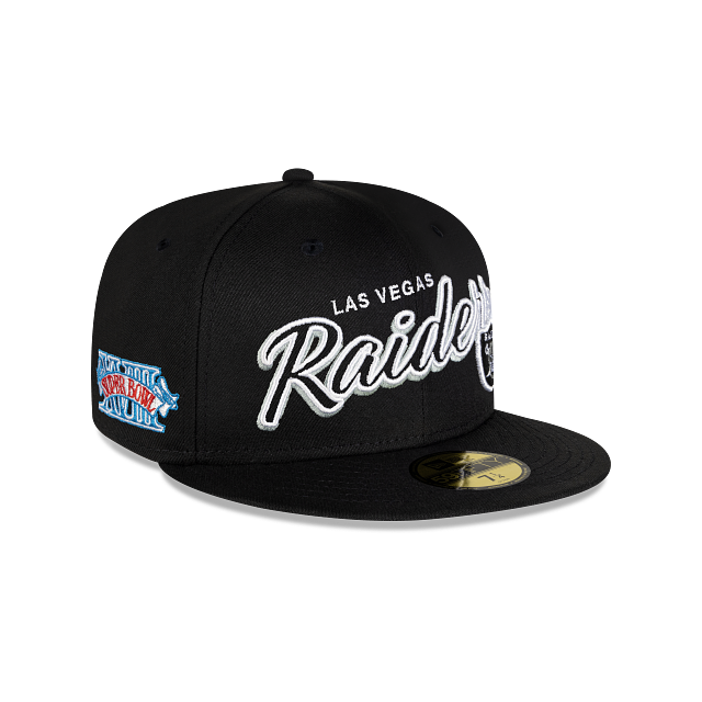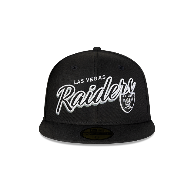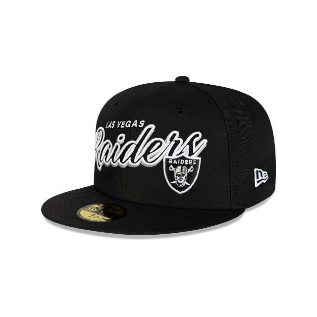 Esta gorra plana New Era 59FIFTY de Las Vegas Raiders de la colección NFL Script Sided presenta un diseño con el nombre y logotipo de los Raiders bordados en los paneles frontales, un parche conmemorativo del lado derecho, el logo de la liga al reverso y el flag de New Era bordado del lado izquierdo. Luce con estilo y cómprala ya.