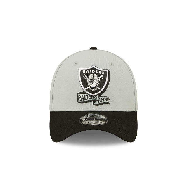 Lleva los colores de tu equipo esta temporada 2022 de la NFL. Esta gorra New Era 39THIRTY de Las Vegas Raiders NFL Sideline 2022 Two Tone presenta el logo del equipo bordado al frente a juego con una bandera con el nombre y su conferencia, un parche de la NFL en el lado derecho y un logo del equipo en la parte trasera. Cómpralo ya.
