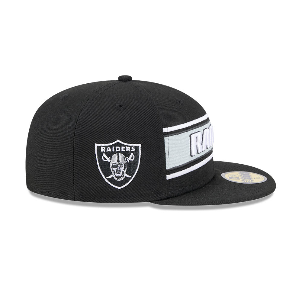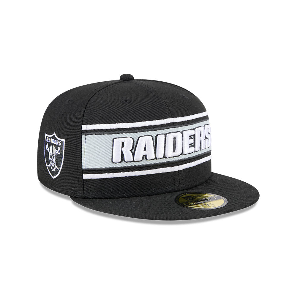 Esta gorra plana New Era 59FIFTY de Las Vegas Raiders de la colección NFL Sideline 2024 presenta el nombre de los Raiders bordado en los paneles frontales sobre una franja en los colores del equipo, el logo del equipo de lado derecho, el logo de la NFL bordado en la parte trasera y el flag de New Era bordado en el lado izquierdo. Cómprala ya.