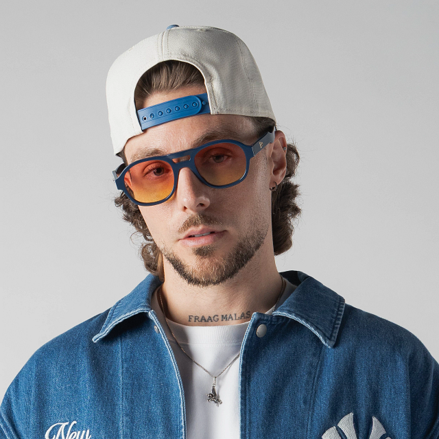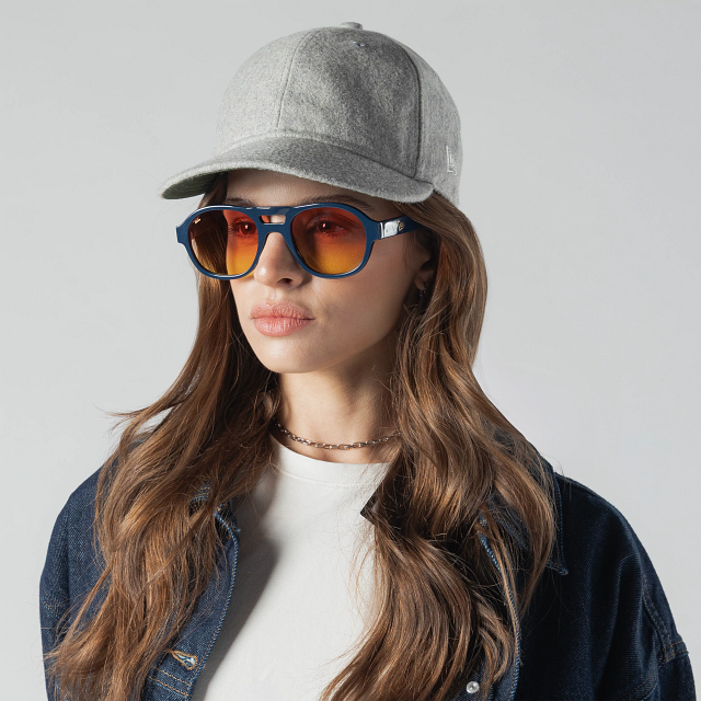Los lentes de sol New Era Lagos Blue combinan diseño premium y esencia icónica. Las patillas están inspiradas en el Flag de New Era con la frase grabada "Handmade to Fit Your Style", el box logo en dorado y un Flag metálico en la patilla izquierda, replicando el estilo de nuestras gorras. El script logo aparece sutilmente en el cristal.