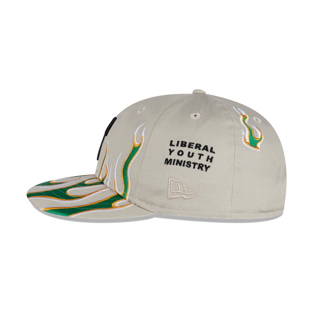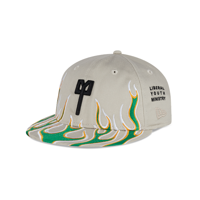 Esta gorra New Era 9FIFTY RC de la exclusiva colaboración Liberal Youth Ministry X New Era, marca mexicana que deslumbró en el Paris Fashion Week y ha sido usada por artistas internacionales, presenta una silueta retro fusionada con detalles contemporáneos bordados en los paneles con múltiples logos de LYM. Cómprala ya.