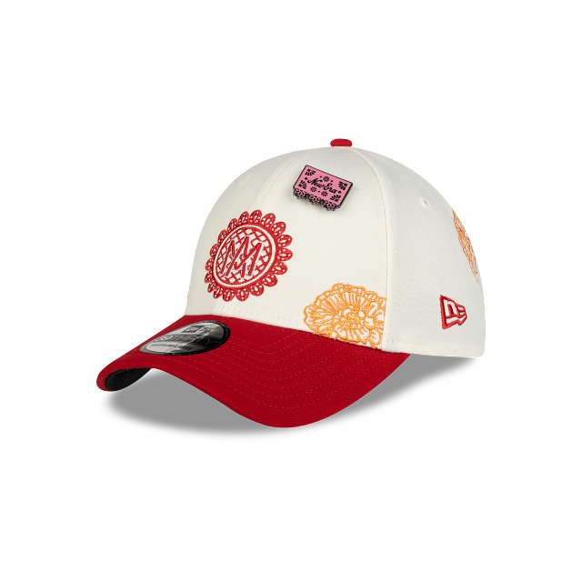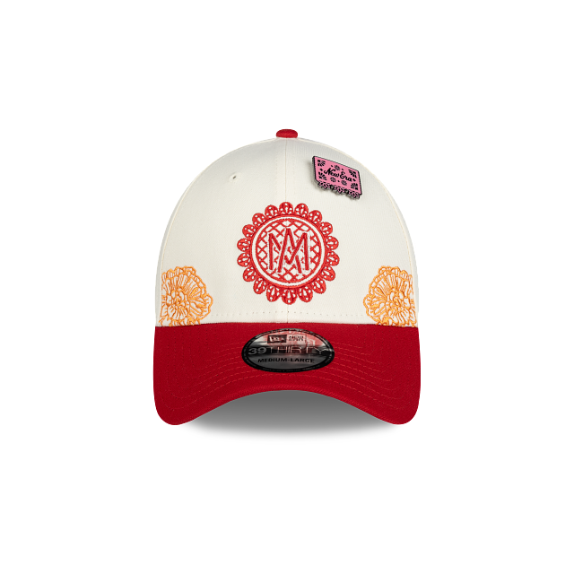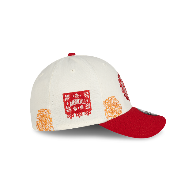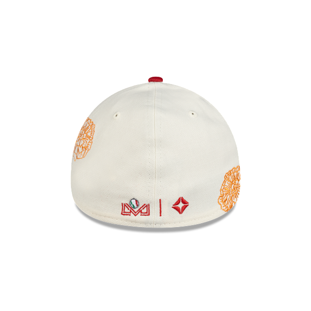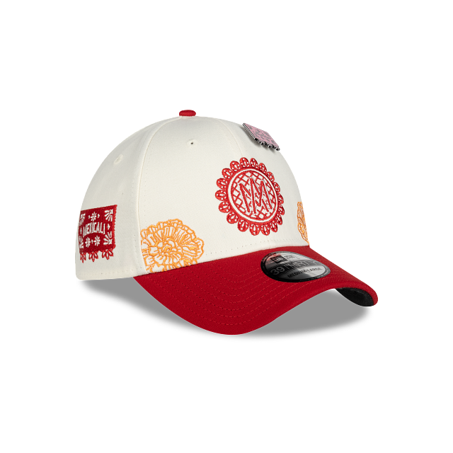 Esta gorra curva New Era 39THIRTY de Los Águilas de Mexicali de la colección LAMP Día de Muertos presenta un diseño inspirado en la artesanía del papel picado con el logotipo de los Águilas bordado en los paneles frontales, detalles de flores de cempasúchil en la corona, el logo de la LAMP al reverso, un pin en forma de papel picado y el flag de New Era bordado del lado izquierdo. Cómprala ya.