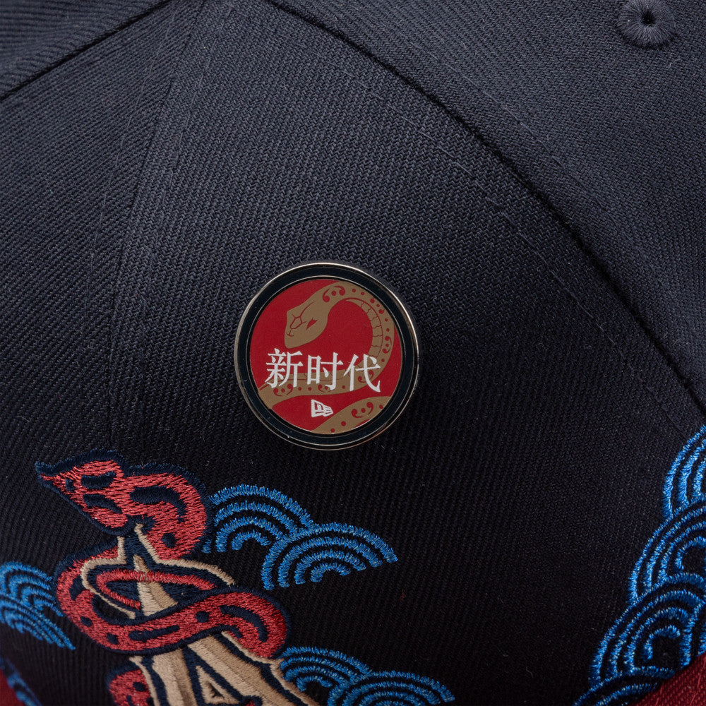 Esta gorra plana New Era 59FIFTY de Los Angeles Angels de la colección Lunar New Year presenta el logotipo de los Angels con una serpiente entrelazada bordada en los paneles frontales acompañado de un pin alusivo al Año de la Serpiente, un parche con caracteres chinos que hacen referencia al equipo del lado derecho, el logo del equipo y el MLB Batterman al reverso y el flag de New Era bordado del lado izquierdo. Cómprala ya.