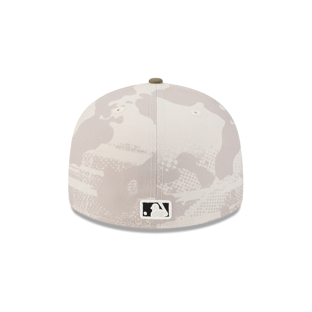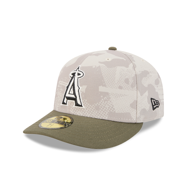 Esta gorra curva New Era 59FIFTY de Los Angeles Angels de la colección MLB Armed Forces Day 2025 presenta un diseño de camuflaje en la corona con el logotipo de los Angels bordado en los paneles frontales, la bandera de Estados Unidos del lado derecho, el MLB Batterman al reverso y el flag de New Era bordado del lado izquierdo. Cómprala ya.