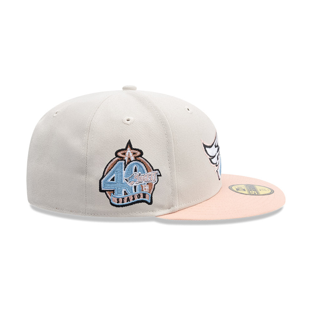 Esta gorra plana New Era 59FIFTY de Los Angeles Angels de la colección MLB Stone Poly Blush presenta el logotipo de los Angels bordado en los paneles frontales, un parche conmemorativo del lado derecho, el MLB Batterman al reverso y el flag de New Era bordado del lado izquierdo. Cómprala ya.