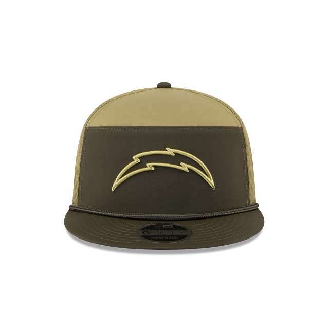 Esta gorra plana New Era 9FIFTY Split Panel de Los Angeles Chargers de la colección NFL Salute to Service 2025 presenta un diseño de color verde con el logotipo de los Chargers bordado en el panel frontal, la bandera de Estados Unidos del lado derecho, malla trucker con el logo de la NFL en la parte de atrás y el flag de New Era bordado del lado izquierdo. Cómprala ya.