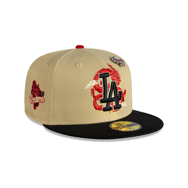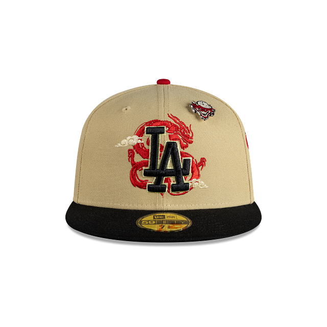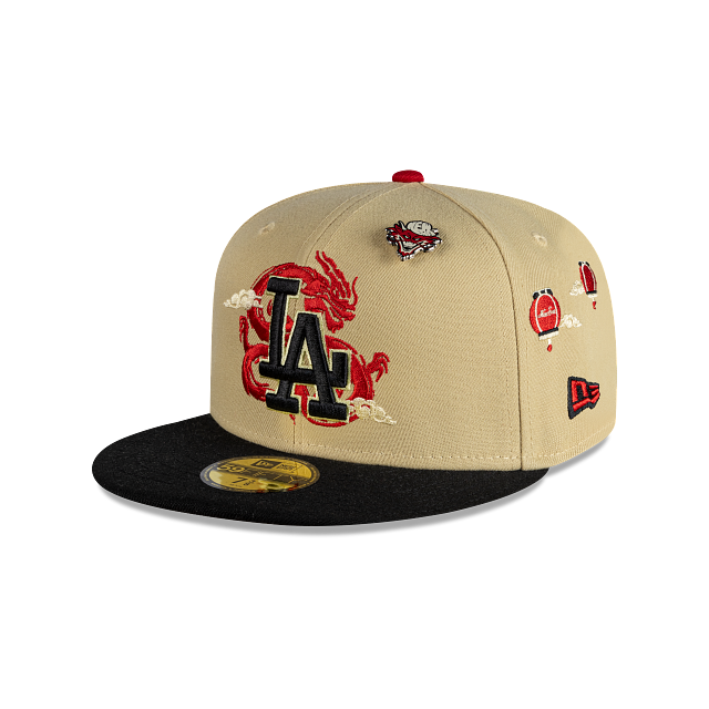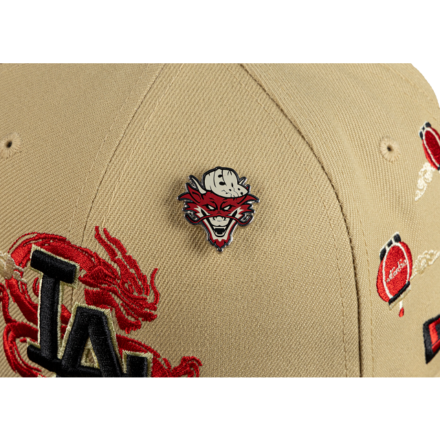 Esta gorra New Era 59FIFTY de MLB Los Angeles Dodgers de la colección Año Nuevo Chino presenta el logotipo de los Dodgers bordado en los paneles frontales sobre un mitológico dragón chino color rojo que también destaca en un pin, detalles culturales en la corona, un parche conmemorativo del lado derecho y el flag de New Era bordado en el lado izquierdo. Cómprala ya.