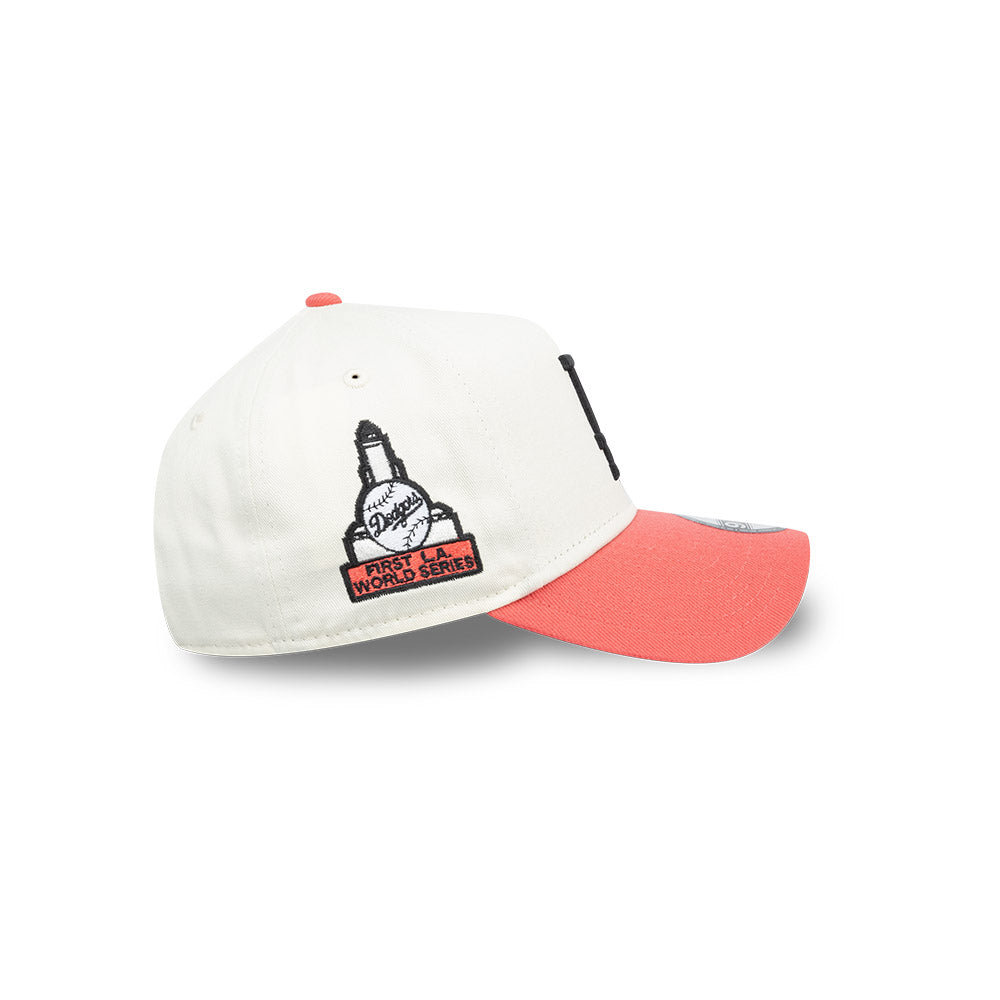 Esta gorra curva New Era 9FORTY A-Frame de Los Angeles Dodgers de la colección MLB Chrome Coral presenta un diseño con una corona en tono claro con la visera en contraste, el logotipo de los Dodgers bordado en los paneles frontales, un parche conmemorativo del lado derecho y el flag de New Era bordado del lado izquierdo. Cómprala ya.