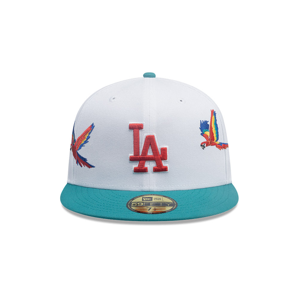 Esta gorra plana New Era 59FIFTY de Los Angeles Dodgers de la colección MLB City Elements presenta un diseño inspirado en la cultura latina con una guacamaya como elemento central, el logotipo de los Dodgers bordado en los paneles frontales, el MLB Batterman en la parte de atrás y el flag de New Era bordado del lado izquierdo. Cómprala ya.