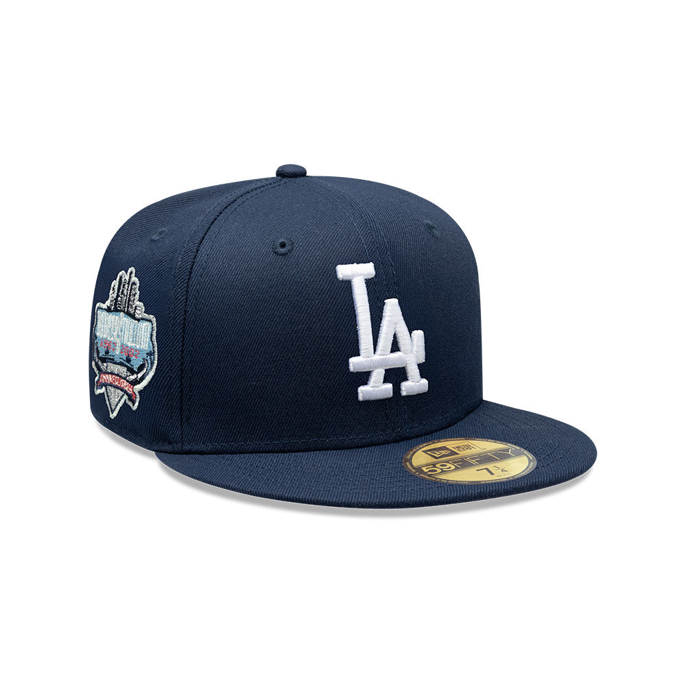 Esta gorra plana New Era 59FIFTY de Los Angeles Dodgers de la colección MLB Coral Blue presenta un diseño en color azul con el logotipo de los Dodgers bordado en los paneles frontales, un parche representativo del equipo del lado derecho, el undervisor en color coral, el MLB Batterman bordado al reverso y el flag de New Era bordado del lado izquierdo. Cómprala ya.