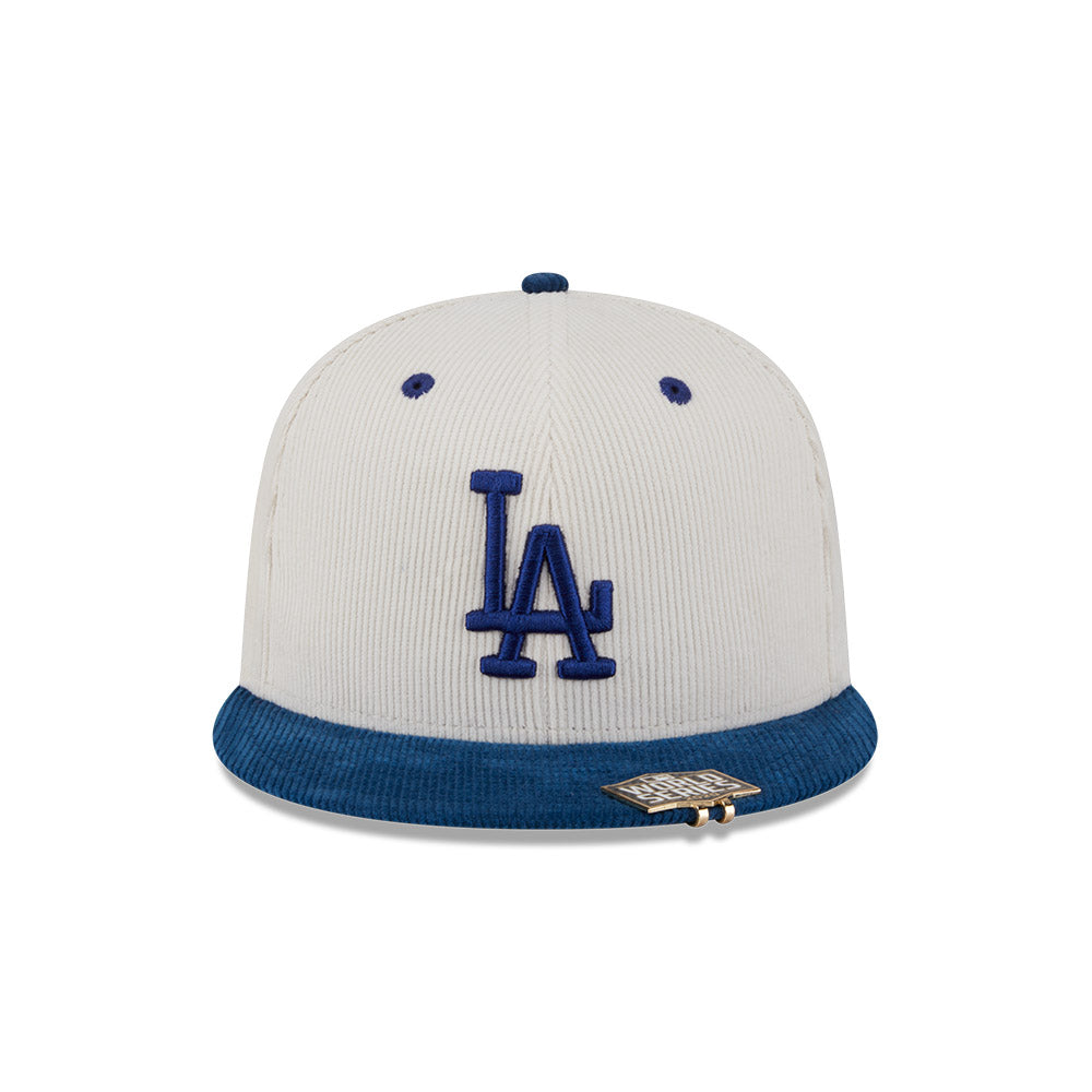 Esta gorra plana New Era 59FIFTY de Los Angeles Dodgers de la colección MLB Cord Visor Clip presenta un diseño 2-tone en pana con el logotipo de los Dodgers bordado en los paneles frontales, un clip World Series en el visor, un parche de la Liga de la MLB a la que pertenecen del lado derecho, el MLB Batterman al reverso y el flag de New Era bordado del lado izquierdo. Cómprala ya.