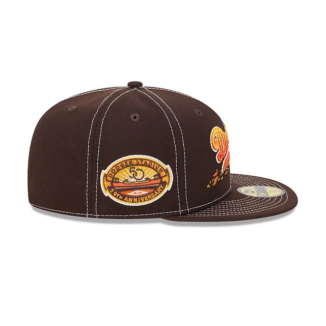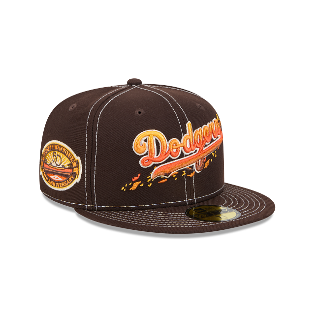 Esta gorra plana New Era 59FIFTY de Los Angeles Dodgers de la colección MLB Fall Foliage presenta un diseño inspirado en la estación de otoño con el nombre de los Dodgers bordado en los paneles frontales, un parche conmemorativo del lado derecho, el MLB Batterman al reverso y el flag de New Era bordado del lado izquierdo. Cómprala ya.