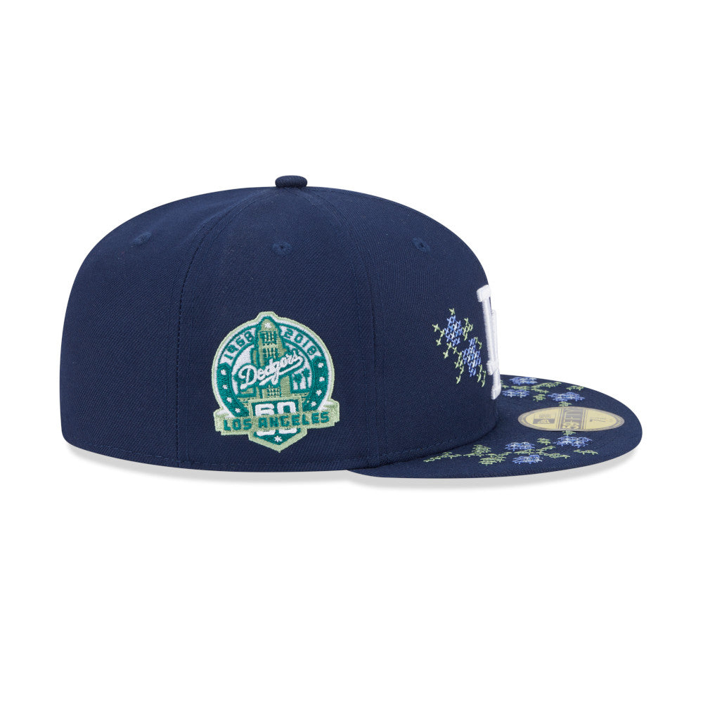 Esta gorra plana New Era 59FIFTY de Los Angeles Dodgers de la colección MLB Garden presenta un diseño con flores bordadas en punto de cruz, el logotipo de los Dodgers bordado en los paneles frontales, parche conmemorativo del lado derecho, el MLB Batterman en la parte de atrás y el flag de New Era bordado del lado izquierdo. Cómprala ya.