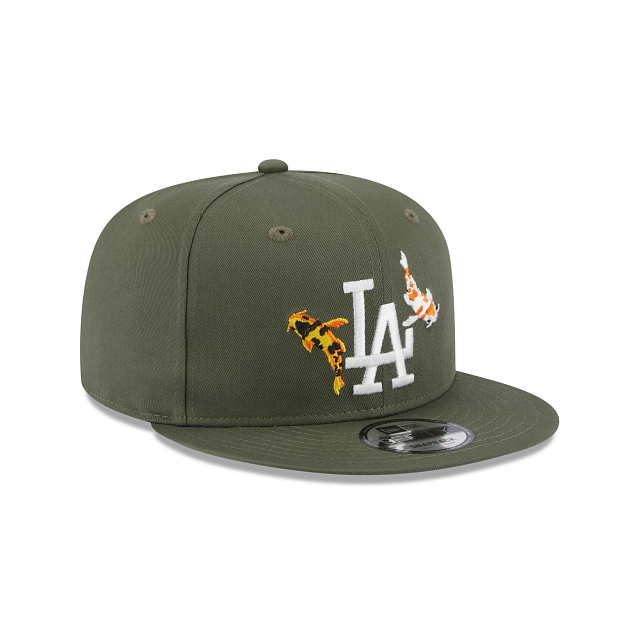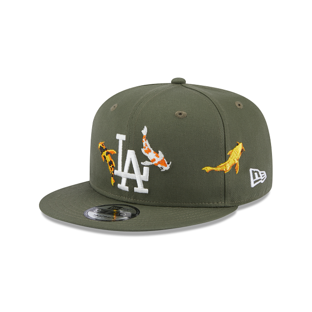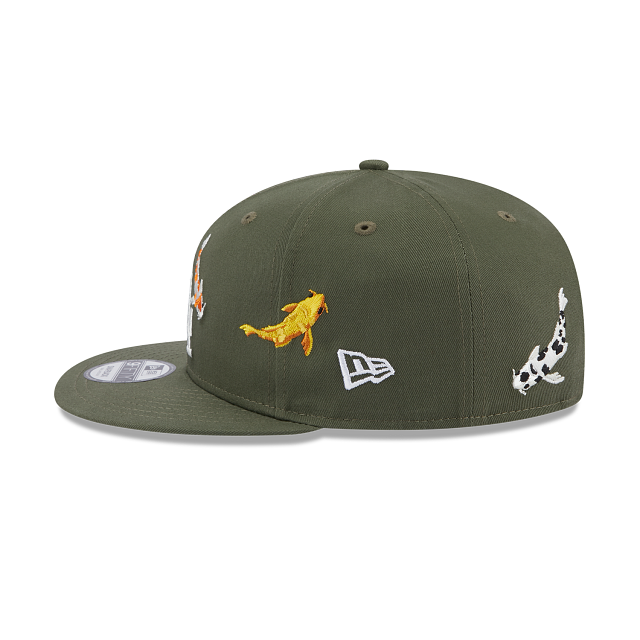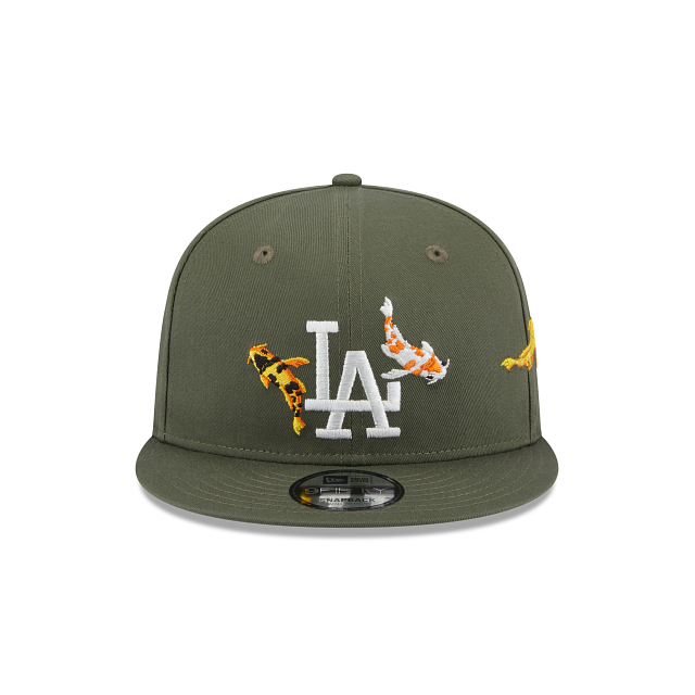 Esta gorra New Era 9FIFTY de Los Angeles Dodgers de la colección MLB Koi Fish Collection en color verde presenta el logo de los Dodgers y peces Koi bordados en los paneles frontales, destaca tu outfit con este estilo único. Cómprala ya.