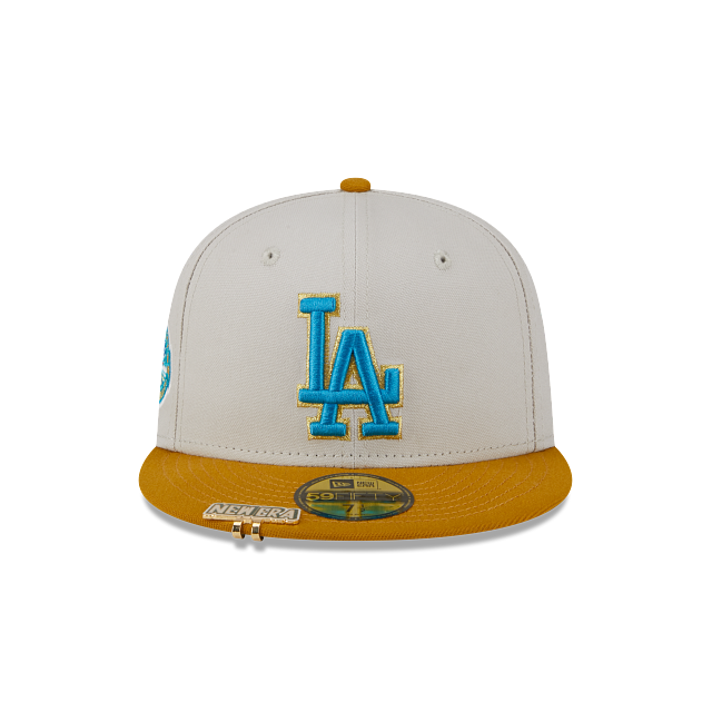 Esta gorra New Era 59FIFTY de Los Angeles Dodgers de la colección MLB Monster Mummy presenta un diseño con la corona en blanco y el logotipo de los Dodgers bordado en color azul neón al frente, un parche conmemorativo del lado derecho, y el flag de New Era bordado en el lado izquierdo. Dale un toque a tu outfit esta temporada y cómprala ya