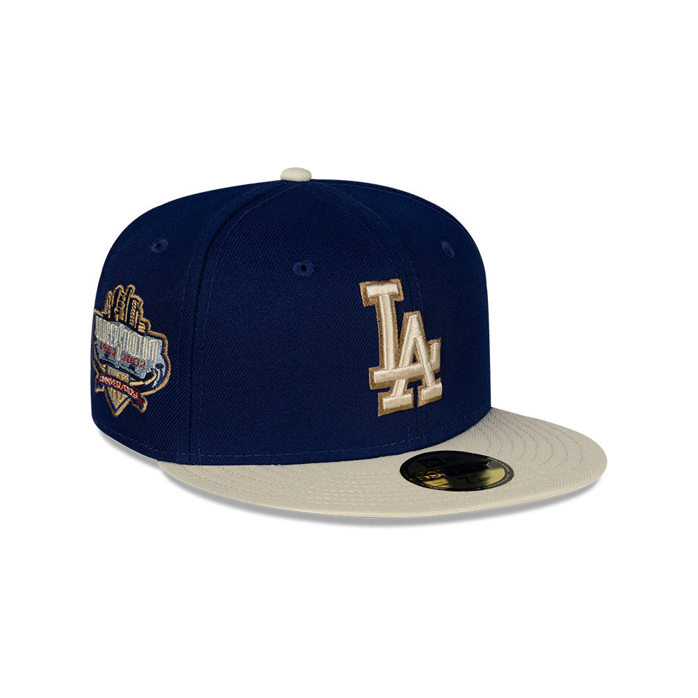 Esta gorra plana New Era 59FIFTY de Los Angeles Dodgers de la colección MLB Oceanside presenta un diseño con el logotipo de los Dodgers bordado en los paneles frontales, parche conmemorativo del lado derecho, el MLB Batterman al reverso y el flag de New Era bordado del lado izquierdo. Cómprala ya.