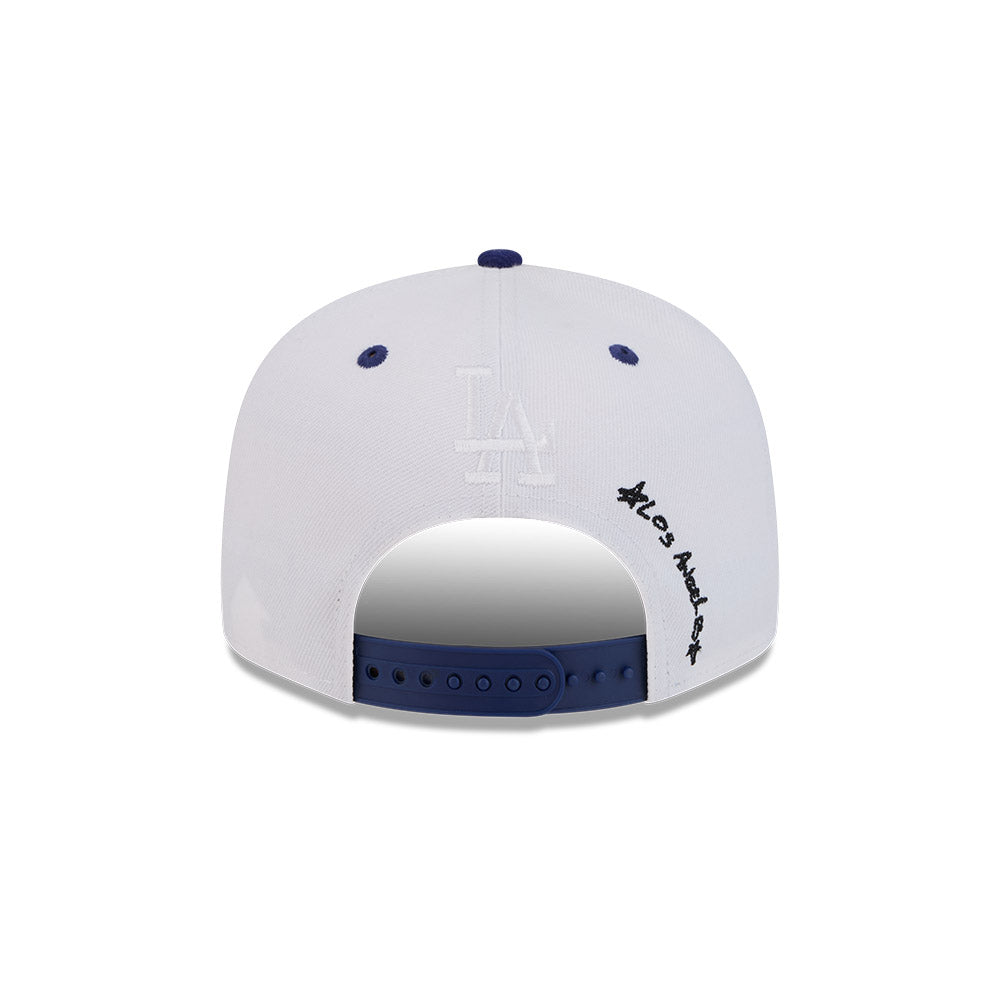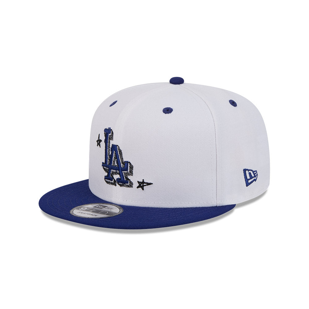 Esta gorra plana New Era 9FIFTY de Los Angeles Dodgers de la colección MLB Official Doodles presenta un diseño con el logotipo de los Dodgers con un detalle de estrellas bordado en los paneles frontales, un parche conmemorativo del lado derecho, el logo del equipo junto el nombre de la ciudad al reverso y el flag de New Era bordado del lado izquierdo. Apoya a tu equipo y cómprala ya.