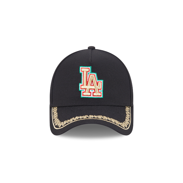 Esta gorra curva New Era 9FORTY A-Frame de Los Angeles Dodgers de la colección MLB Ornate Visor presenta el logotipo de los Dodgers bordado en color dorado con el contorno de los colores patrios en los paneles frontales, detalles bordados en dorado en el visor y el flag de New Era bordado del lado izquierdo. Cómprala ya.