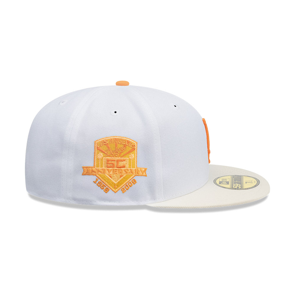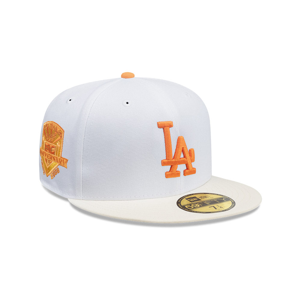Esta gorra plana New Era 59FIFTY de Los Angeles Dodgers de la colección MLB Shaved Ice presenta un diseño en color blanco con el logotipo de los Dodgers bordado en los paneles frontales, parche conmemorativo del lado derecho, el MLB Batterman en la parte de atrás y el flag de New Era bordado del lado izquierdo. Luce con estilo y cómprala ya.