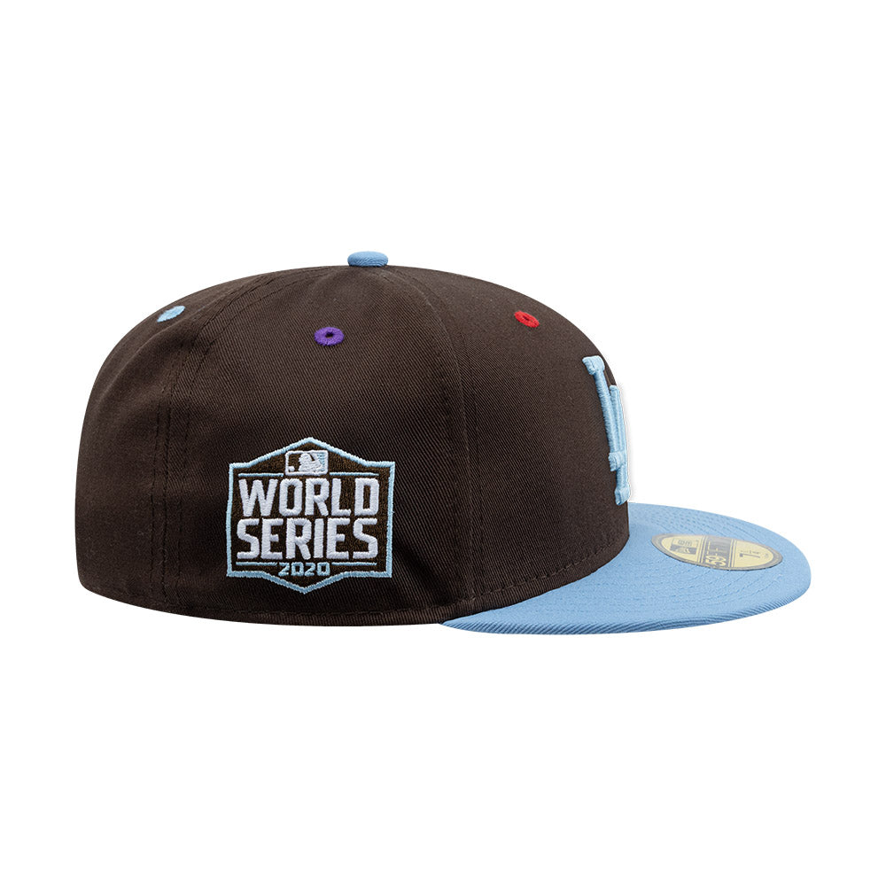 Esta gorra plana New Era 59FIFTY de Los Angeles Dodgers de la colección MLB Smarties presenta un diseño en color chocolate con el logotipo de los Dodgers bordado en los paneles frontales y el visor en un color contrastante, un parche World Series del lado derecho, el MLB Batterman al reverso y el flag de New Era bordado del lado izquierdo. Cómprala ya.