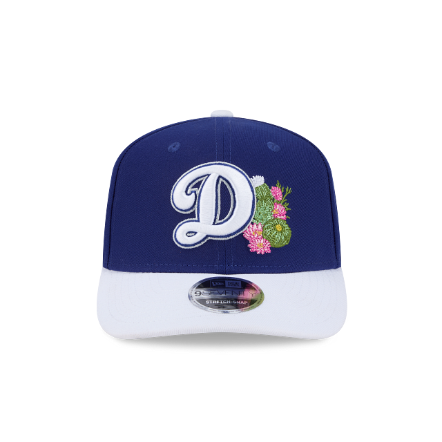 Esta gorra curva New Era 9SEVENTY Stretch Snap de Los Angeles Dodgers de la colección MLB Spring Training 2026 presenta el logotipo de los Dodgers bordado acompañado de un detalle floral en los paneles frontales, parche Cactus League del lado derecho, el MLB Batterman en la parte de atrás, estampado en forro interior y el flag de New Era bordado del lado izquierdo. Cómprala ya.
