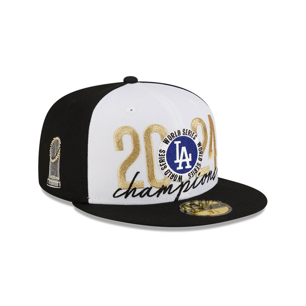 Celebra al campeón de la MLB World Series 2024 con esta gorra plana New Era 59FIFTY de Los Angeles Dodgers que presenta un diseño con el logotipo de los Dodgers bordado en los paneles frontales junto con la leyenda de Champions 2024, el Commissioner's Trophy del lado derecho, el MLB Batterman al reverso y el flag de New Era bordado del lado izquierdo. Cómprala ya.