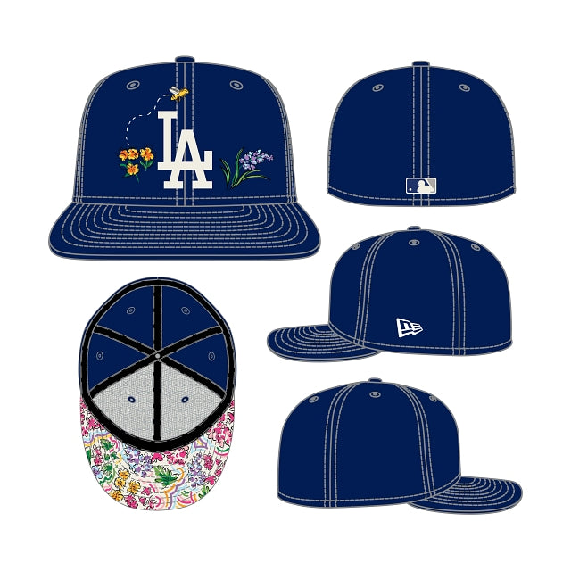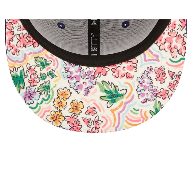 Esta gorra New Era 59FIFTY de Los Angeles Dodgers Watercolor Floral presenta un logo de los Dodgers bordado en los paneles frontales rodeado de flores de colores y una abeja. Detalles adicionales incluyen undervisor floral. Cómprala ya.