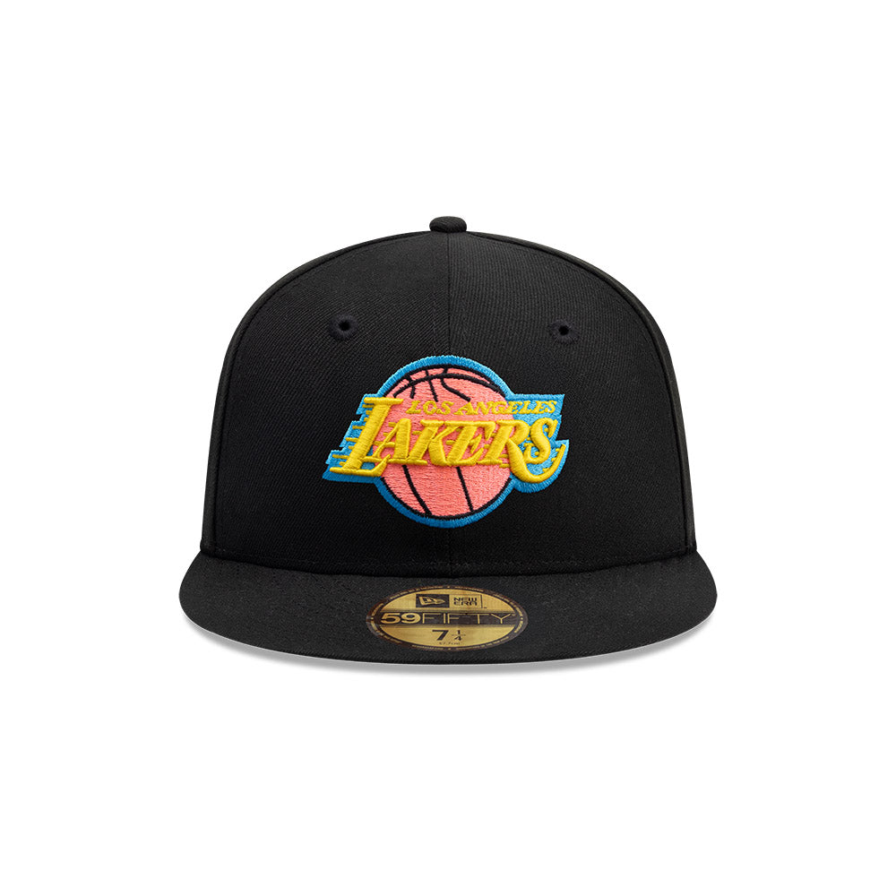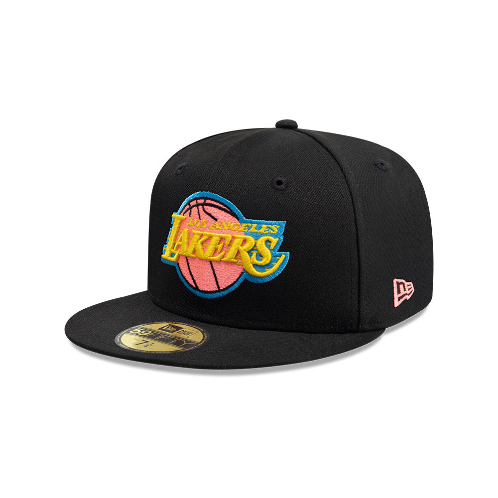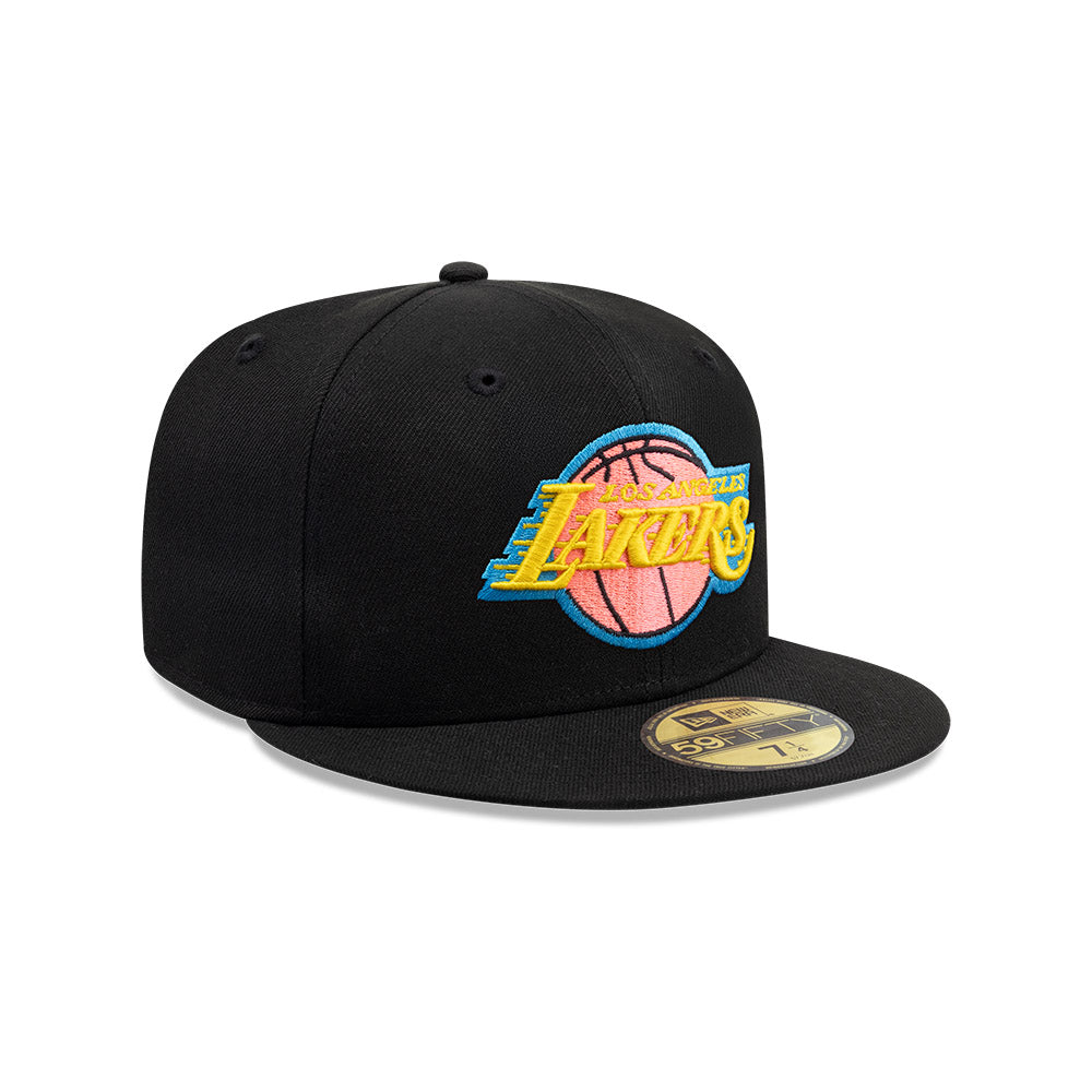 Esta gorra plana New Era 59FIFTY de Los Angeles Lakers de la colección NBA Black Neon presenta el logotipo de los Lakers bordado en los paneles frontales en colores neón, el logo de la NBA al reverso y el flag de New Era bordado del lado izquierdo. Cómprala ya.